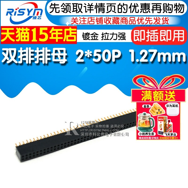 📚 Risym双排母1.27mm 2x50 双排排母 双排座 2*50P母座 直插 镀金