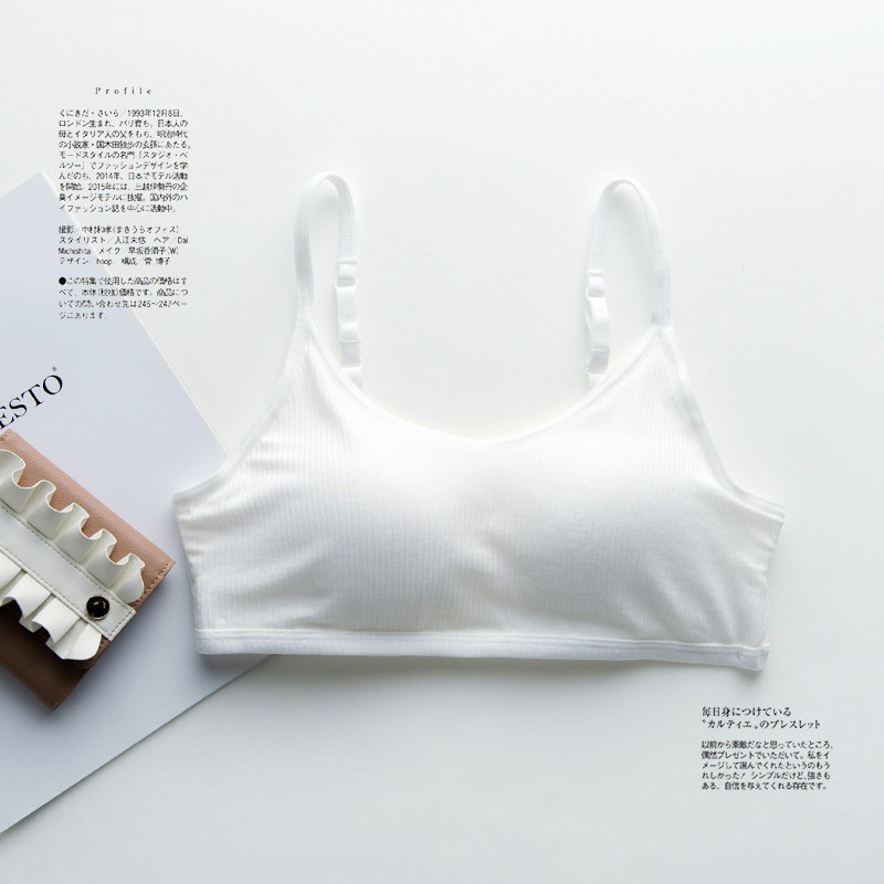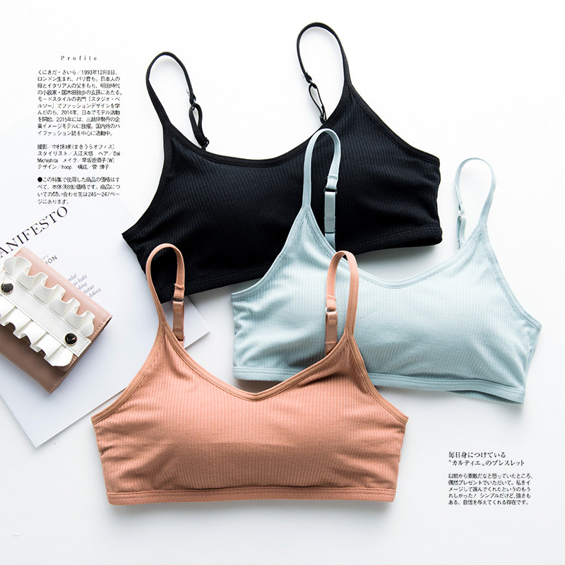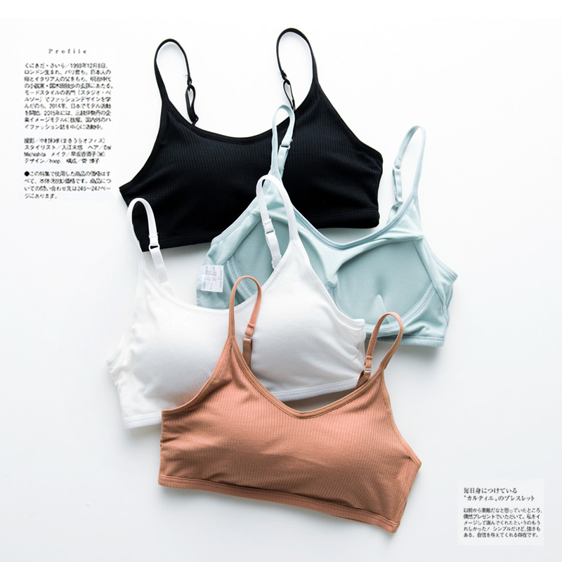 📚 螺纹无钢圈女美背带胸垫罩杯一体吊带背心文胸抹胸瑜珈运动内衣