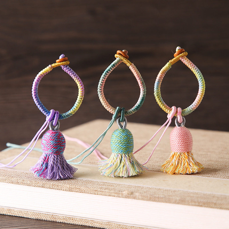 📚 手工编织渐变金刚结指环扣流苏挂件藏式钥匙扣包挂宋锦棉线吊坠