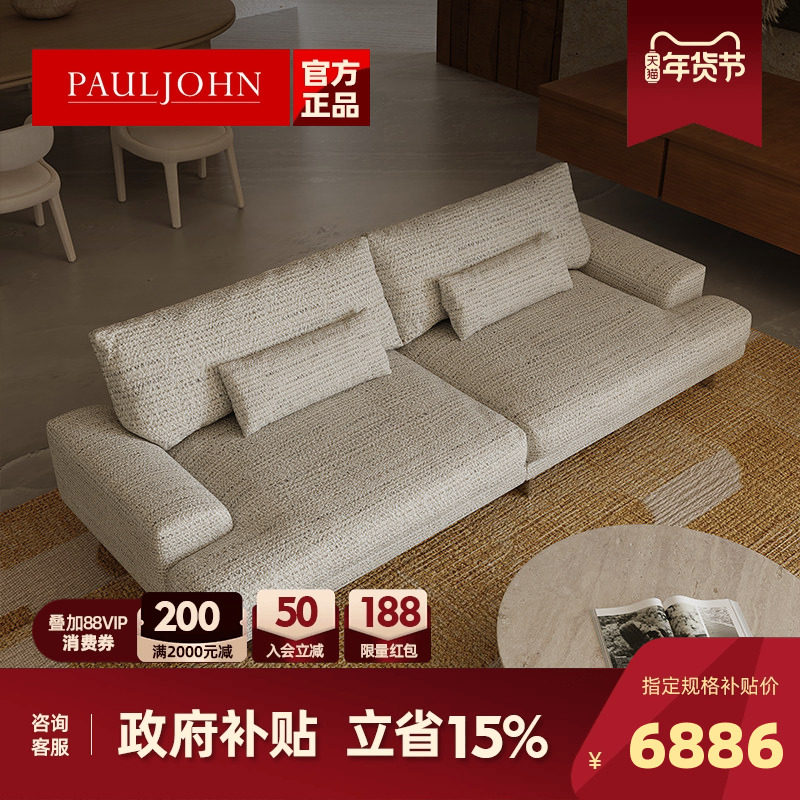 📚 PAULJOHN意式轻奢布艺沙发进口棉麻小户型客厅三人位羽绒沙发新款