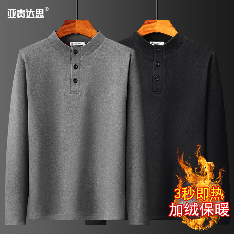 📚 秋冬德绒双面绒加厚长袖T恤男立领纯色保暖打底衫上衣韩版秋衣