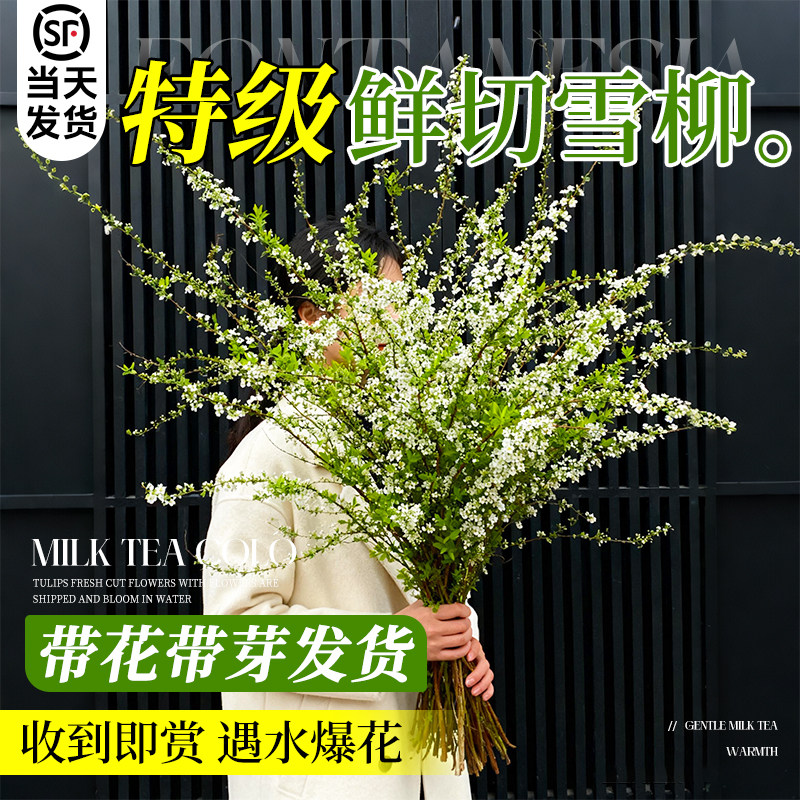 📚 雪柳鲜枝带花苞水养干枝客厅水培植物云南鲜花卉插花绿植枝条好养