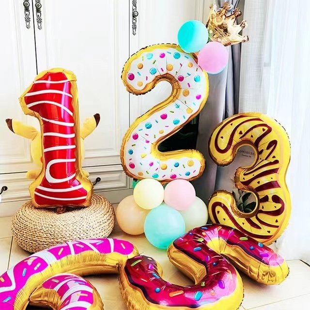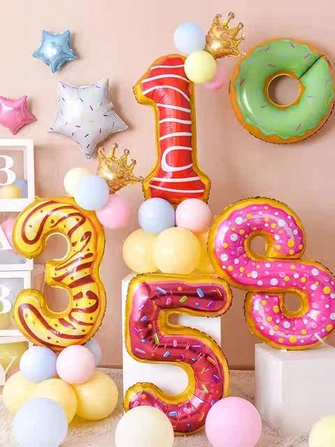 📚 ins糖果彩色甜甜圈冰激凌32寸数字气球儿童生日婚庆派对装饰布置
