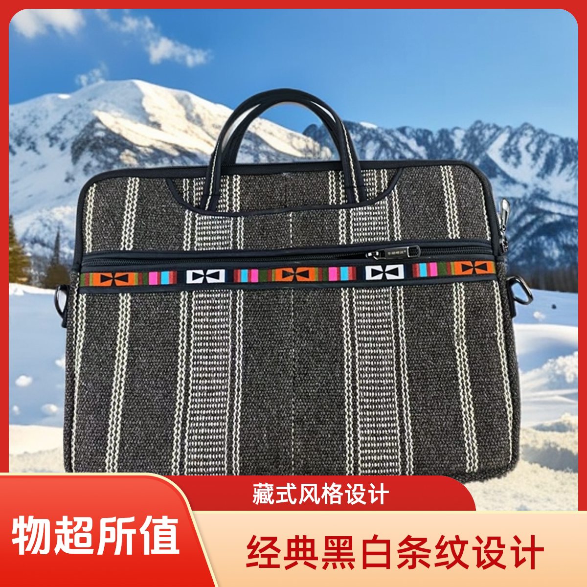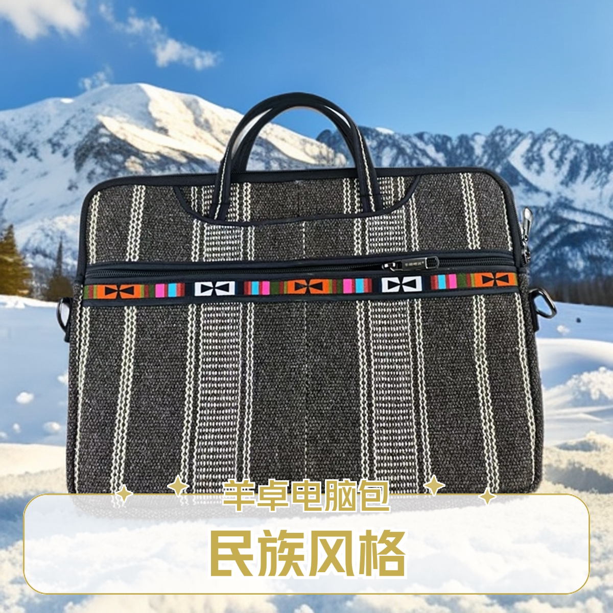 📚 藏式风格条纹手提包拼色多色羊湖特产民族风格电脑包公文包男款