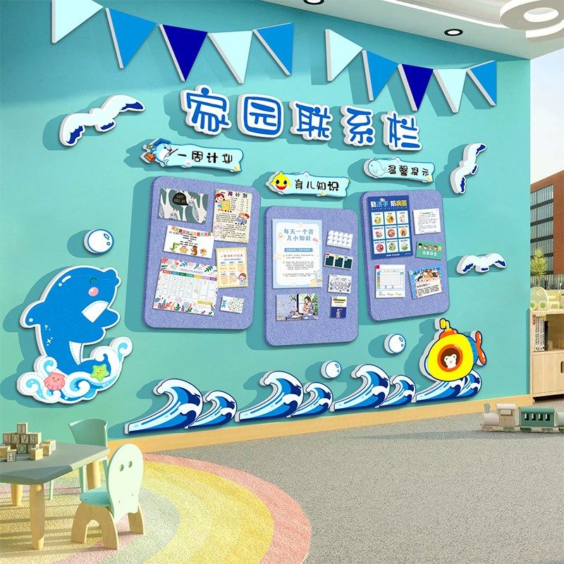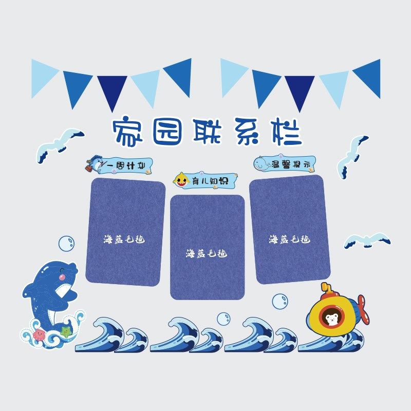 📚 幼儿园墙面装饰海洋题环创成品公告栏毛毡板展示家园联系栏文化