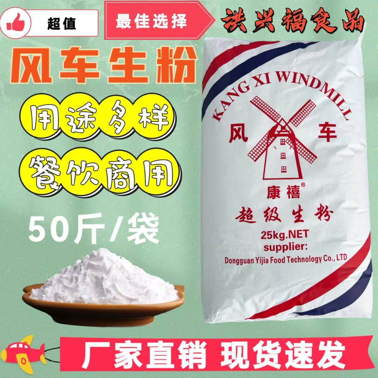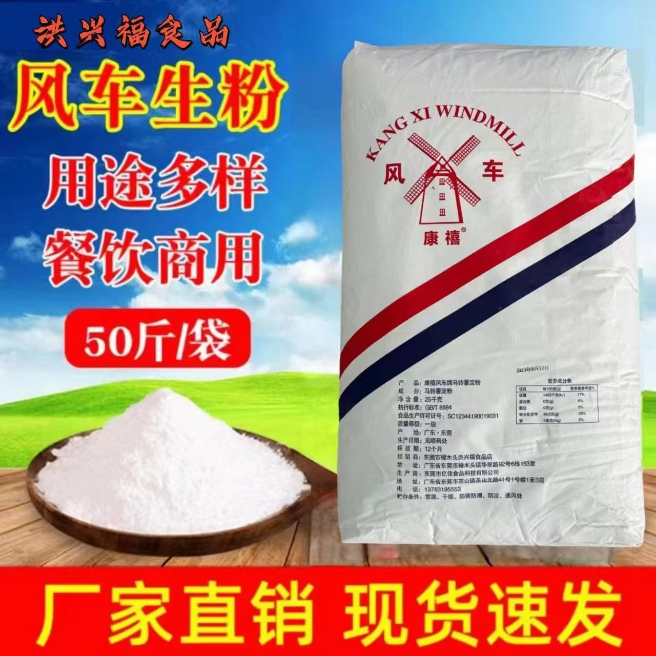 📚 超级风车生粉大包装纯马铃薯淀粉纯土豆粉商用高级酒店专用50斤