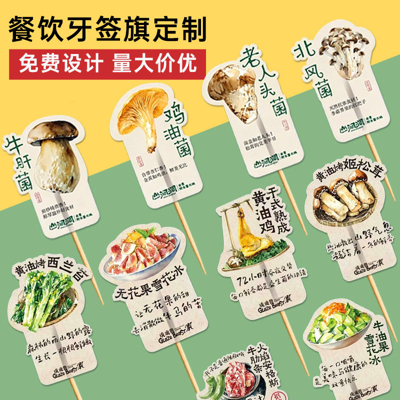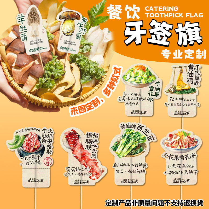 📚 餐饮牙签旗定制火锅店食材名称小旗子免费设计招牌菜装饰插旗定做