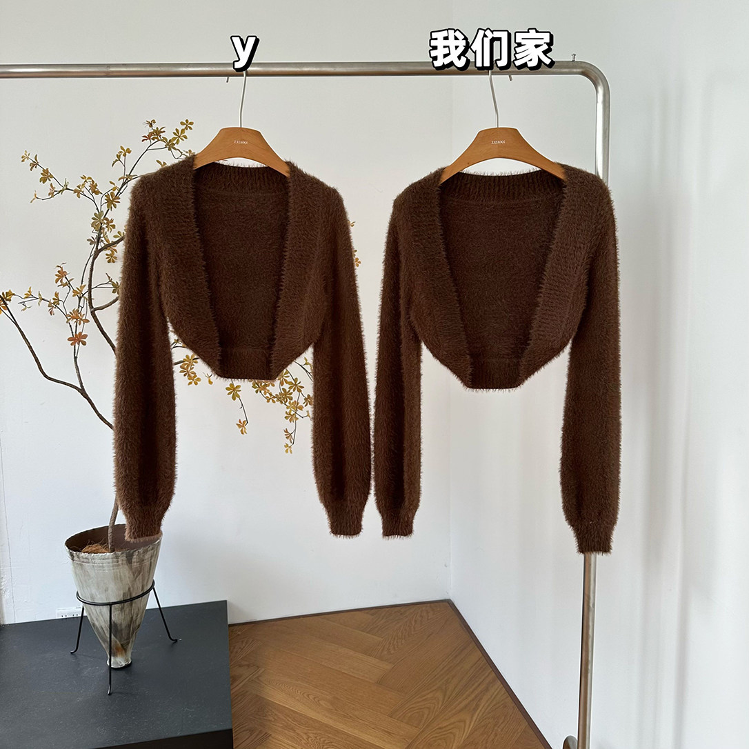 📚 柒月末"海棠花未眠"%法式长袖针织毛衣短款披肩外套女冬