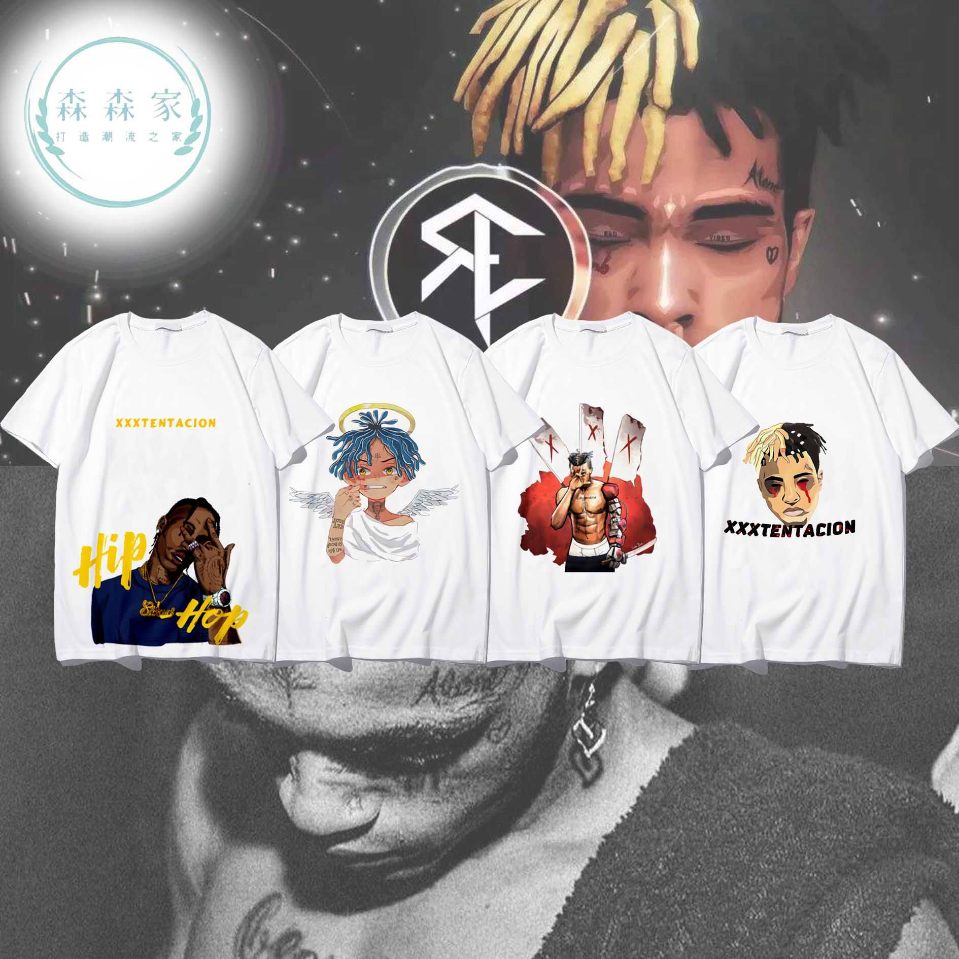 📚 xxxtentacion欧美纪念说唱街头t恤嘻哈hiphop衣服男女短袖T恤夏季
