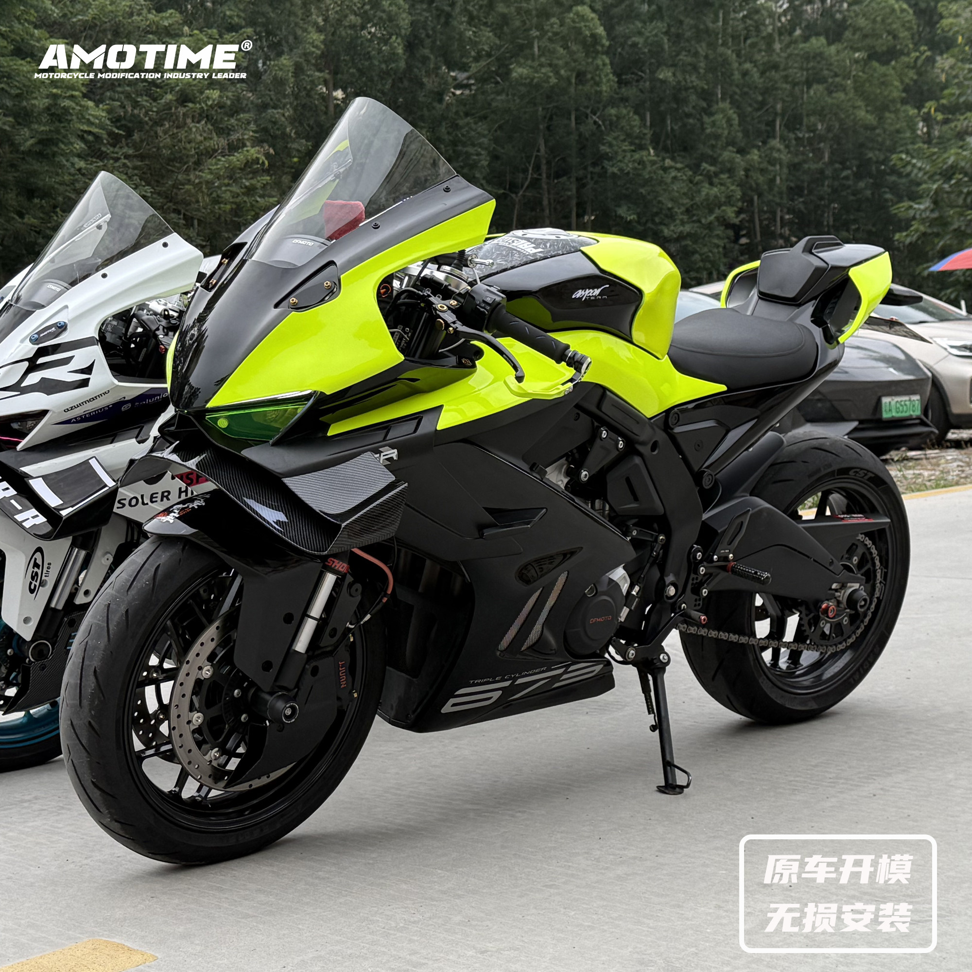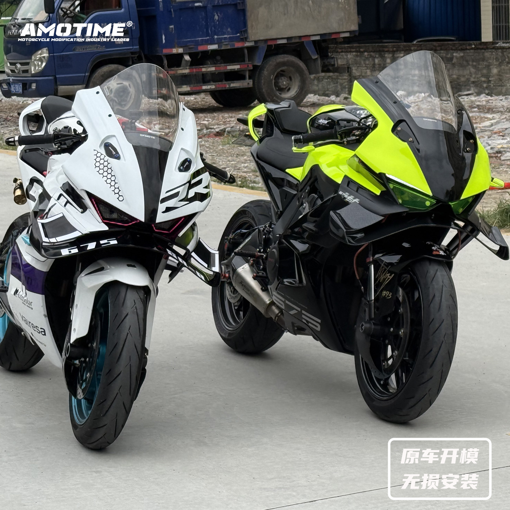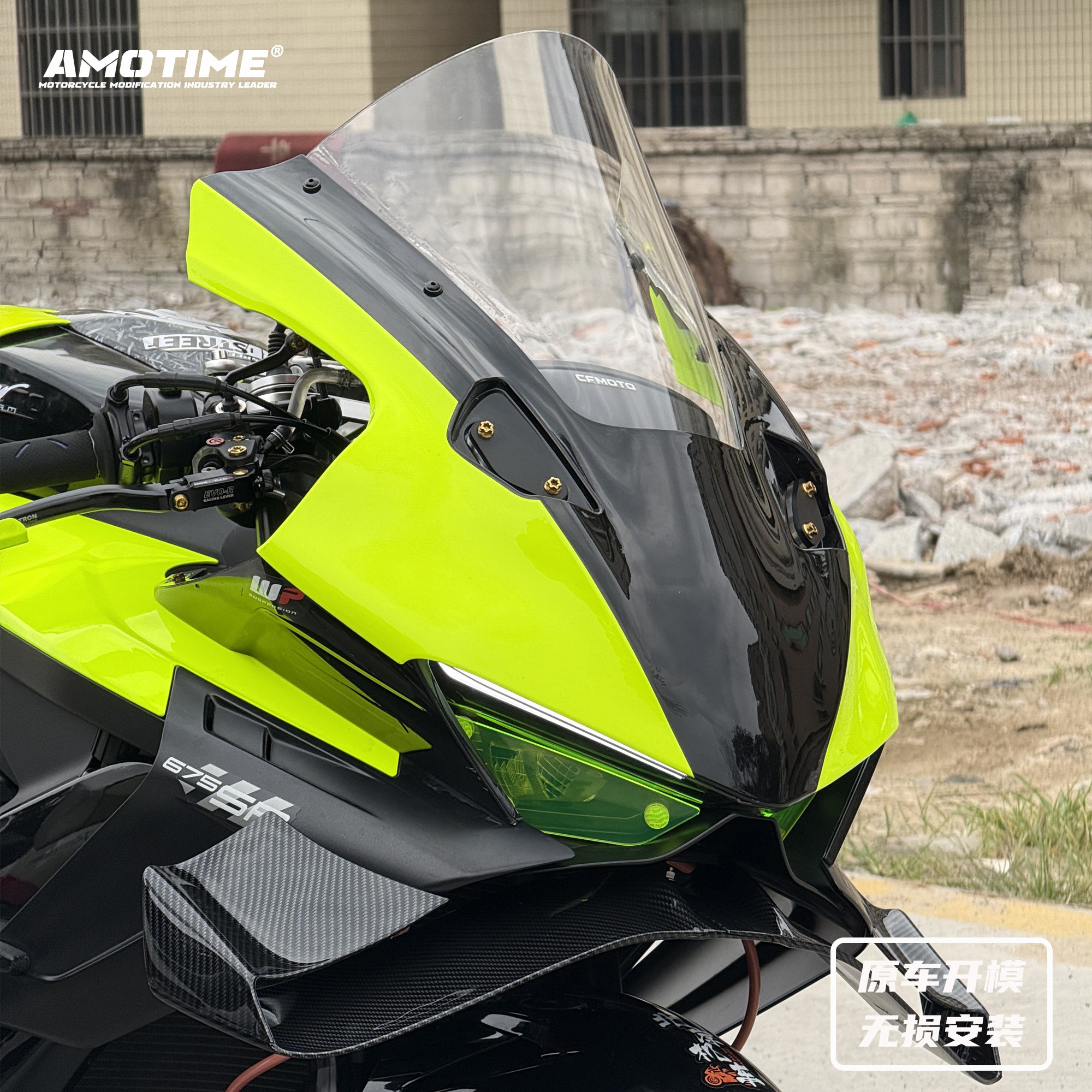 📚 适用675SR 改装一站式荧光黄绿色车外壳定风翼头罩风挡后驼峰配件