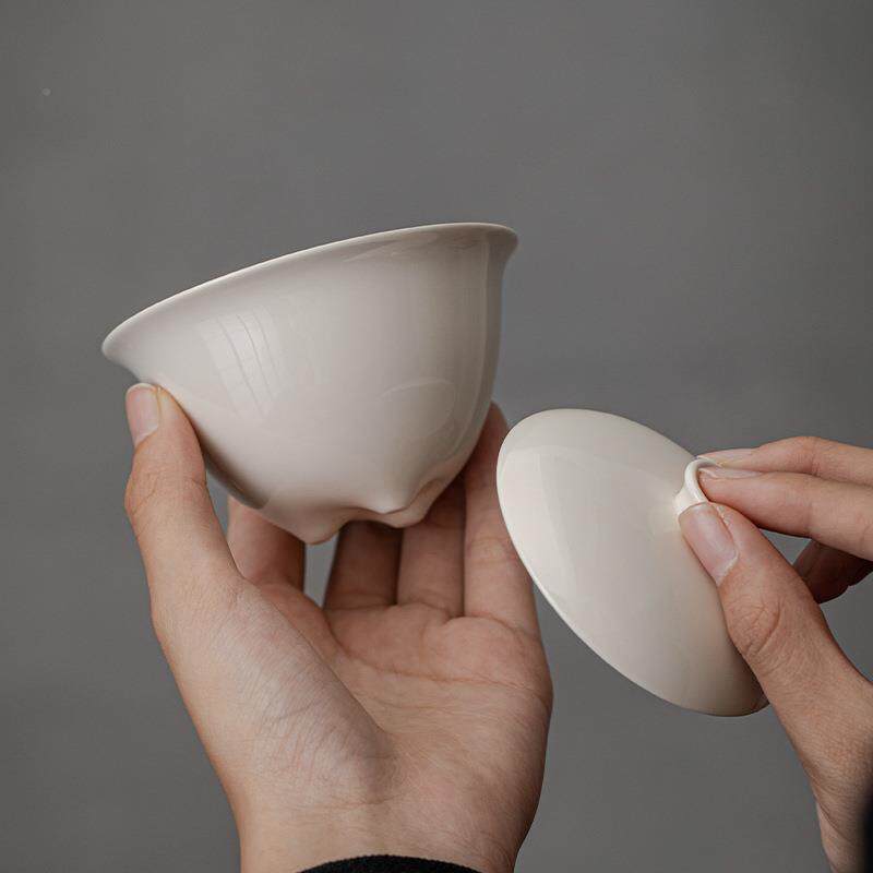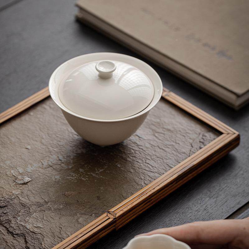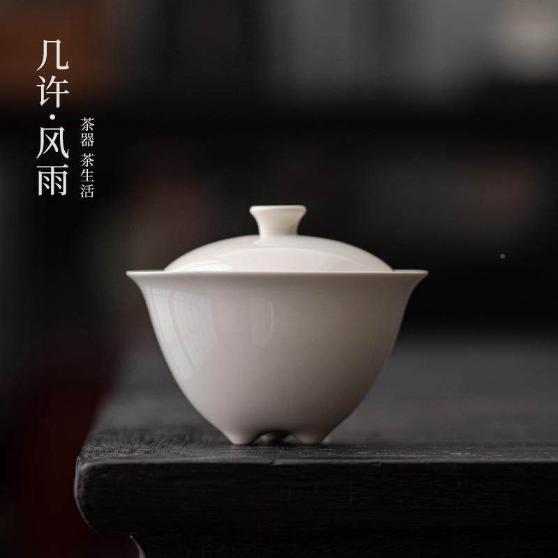📚 几许风雨盖陶瓷三三足盖碗家足盖碗茶杯带木灰草手工茶碗大号用泡