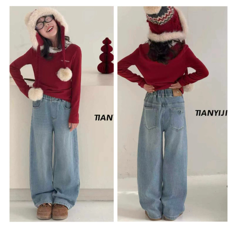 📚 天依角裤子2026春款新女童牛仔直筒裤中大童韩版休闲裤亲子18031