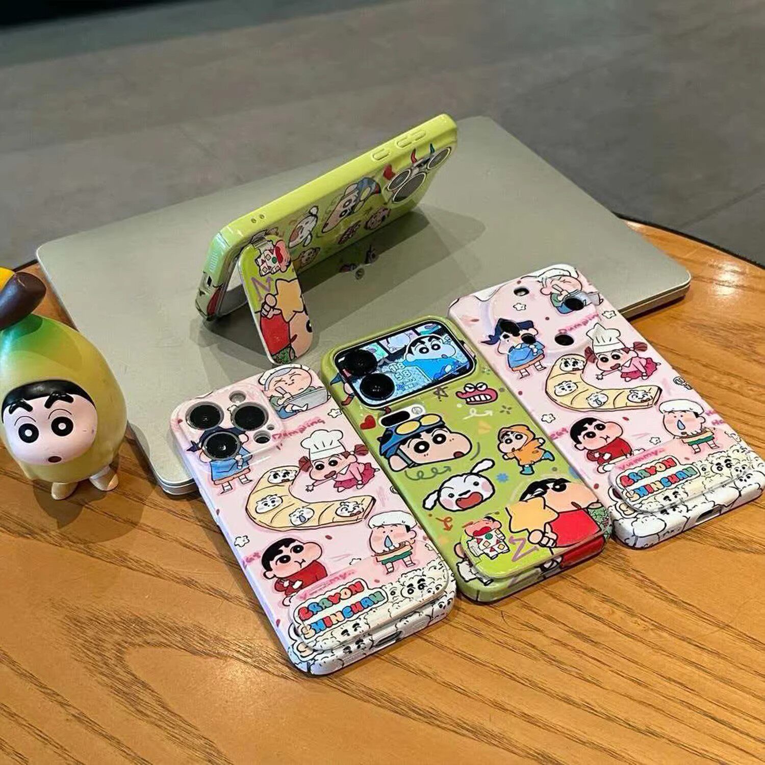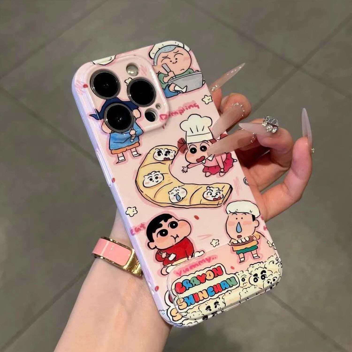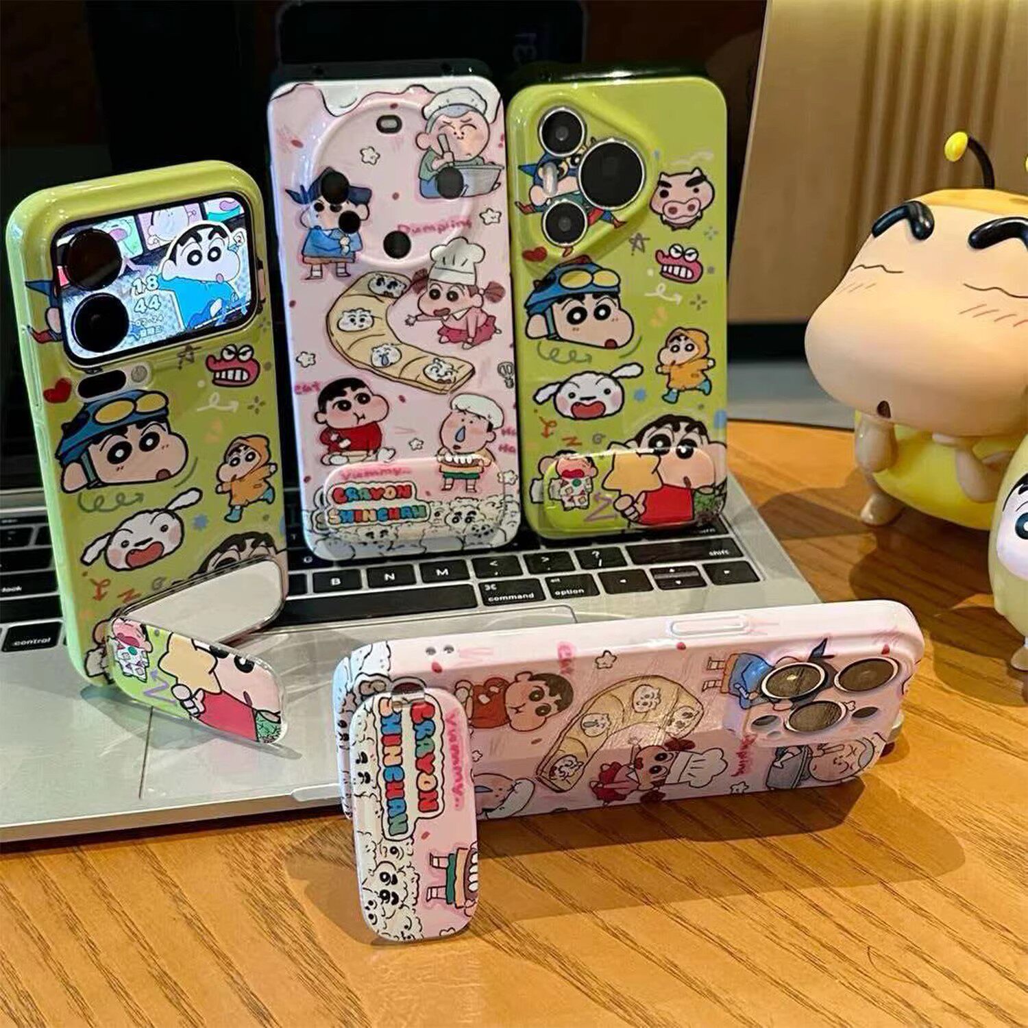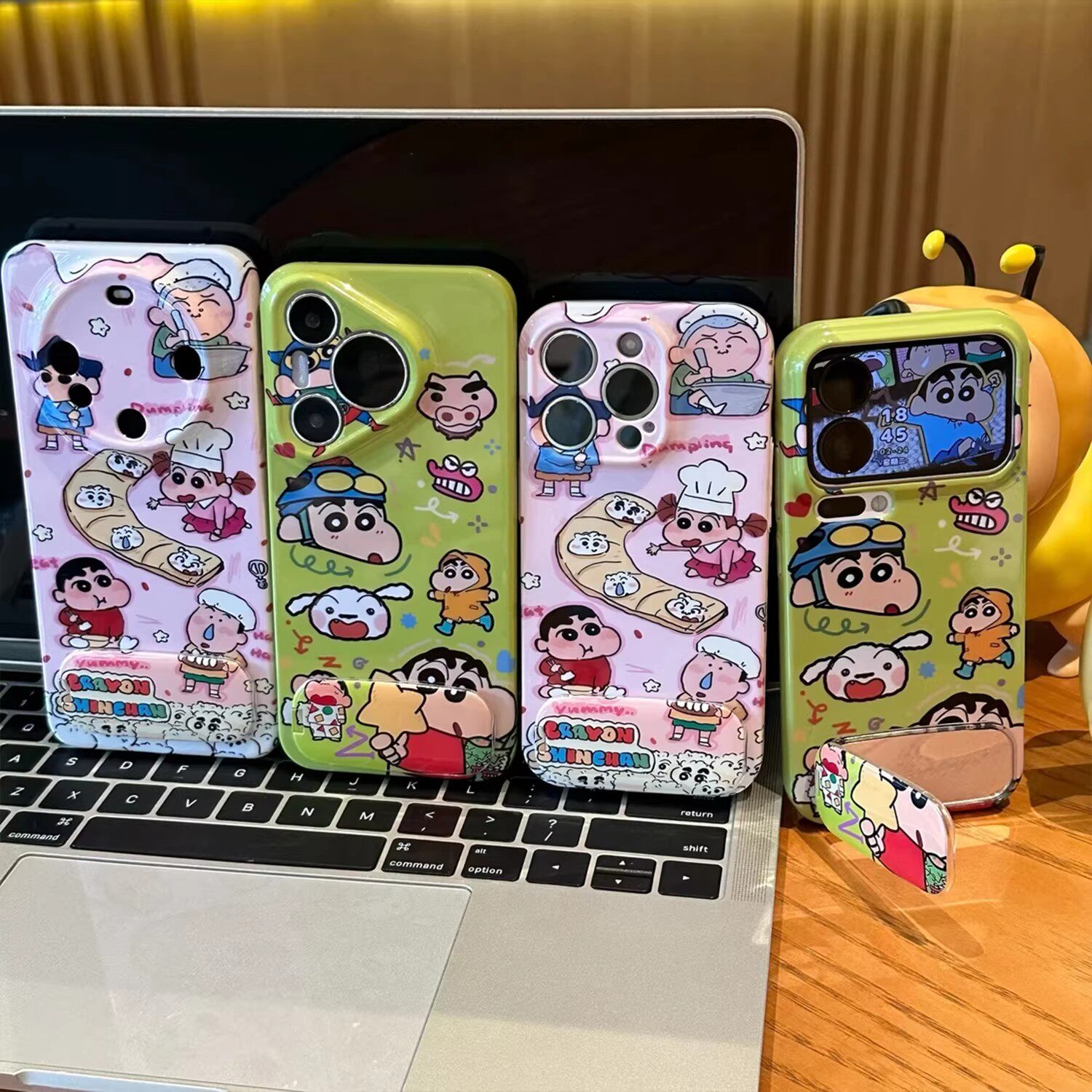 📚 吃饺子小新支架适用苹果17手机壳iPhone16/15PROMAX新款华为mate80菲林vivos50情侣OPPOreno15C红米turbo5max