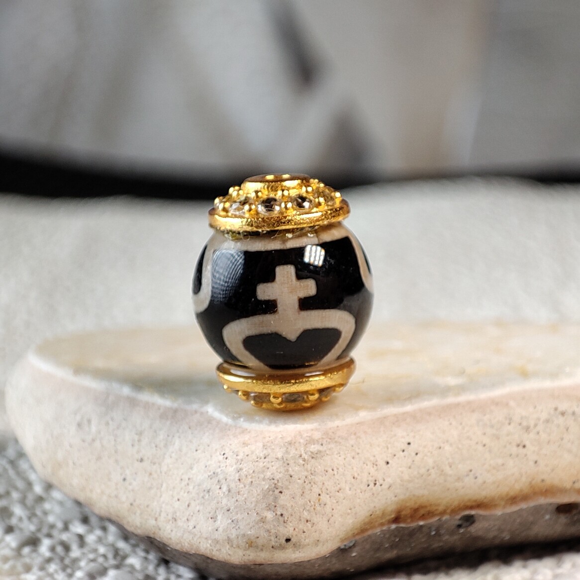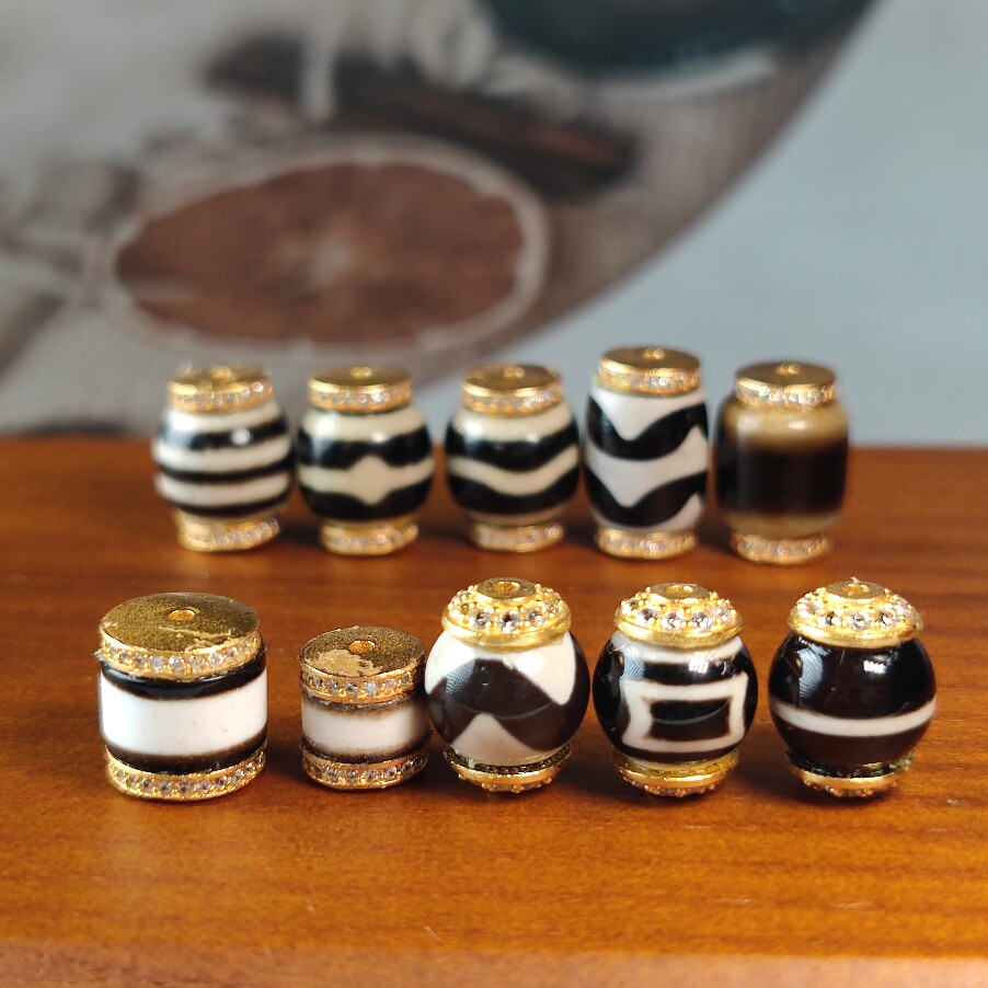📚 珠改系镶嵌黑白玛瑙虎牙一线药师天珠玛瑙隔珠DIY手串项链配件