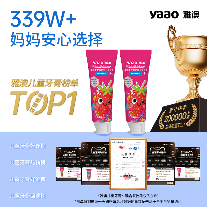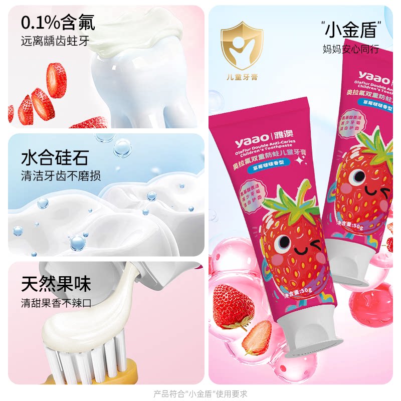 📚 德国雅澳儿童牙膏6个月-3岁-12岁双氟奥拉氟换牙期龋齿旗舰店yaao