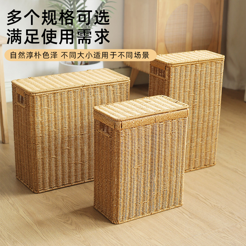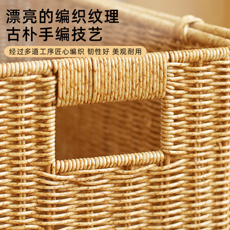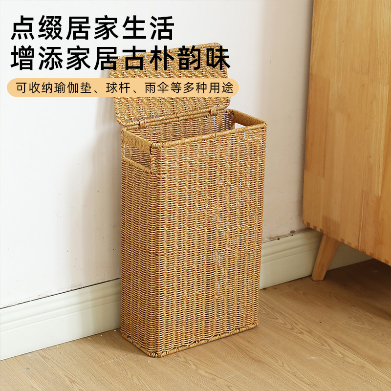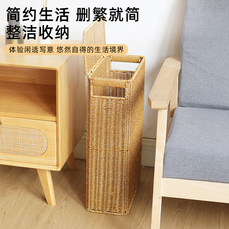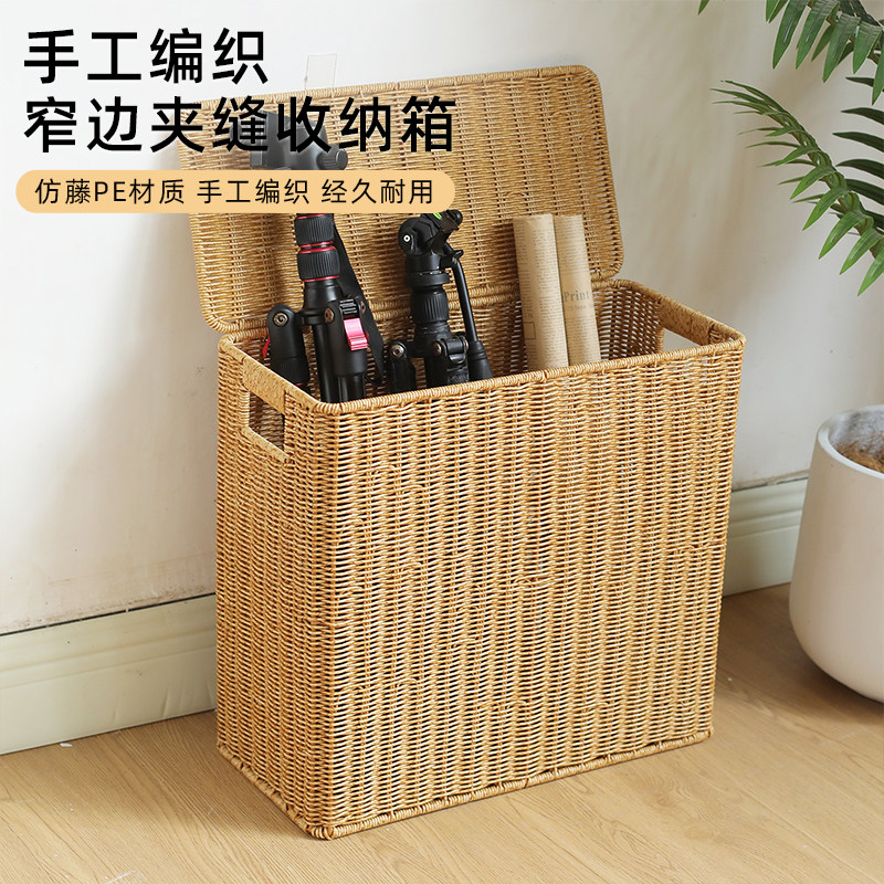 📚 KENS仿藤编窄高款带盖收纳箱家用缝隙篮墙角沙发边角玩具杂物盒
