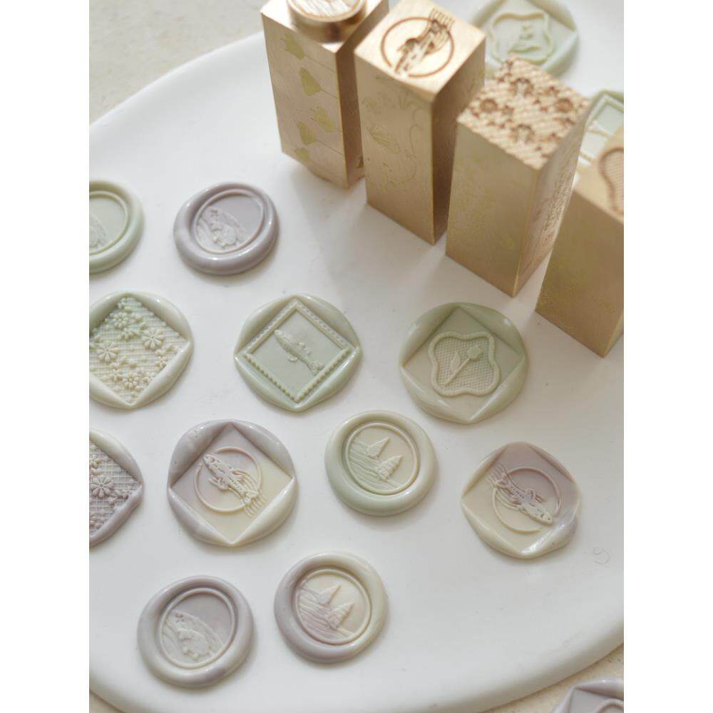 📚 南初文创 包邮方铜柱火漆印章小金条浮雕鱼黄铜章蝴蝶结蕾丝盖戳