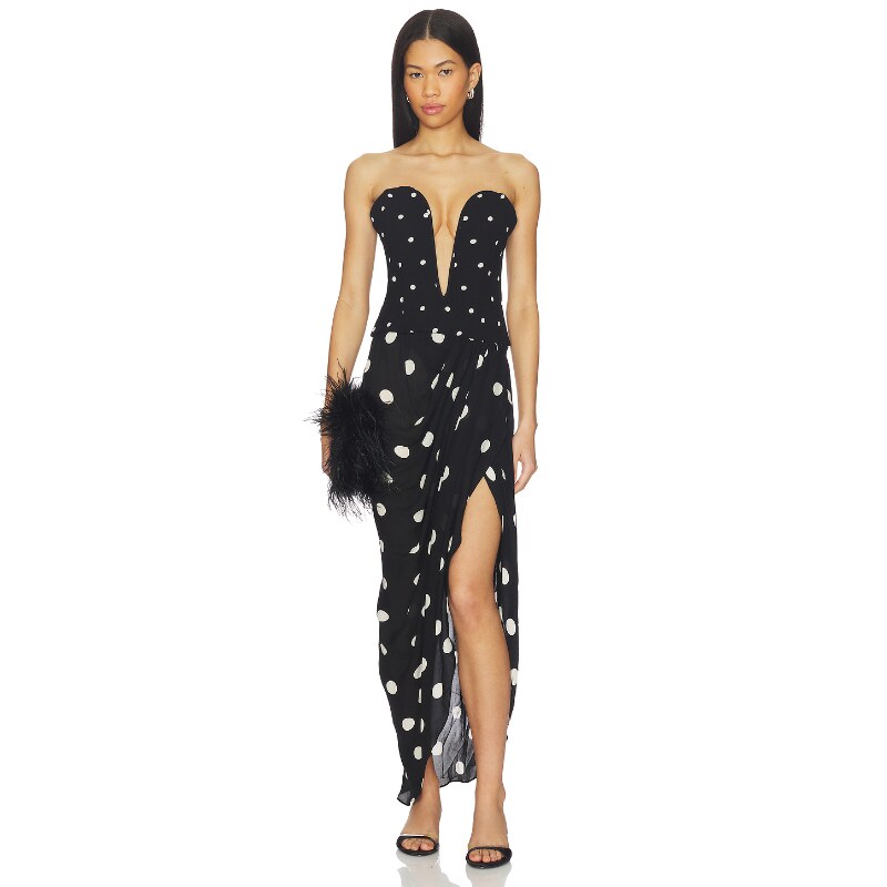 📚 ADRIANA DEGREAS POLKA DOT 无带迷迪裙 黑色REVOLVE小众新款