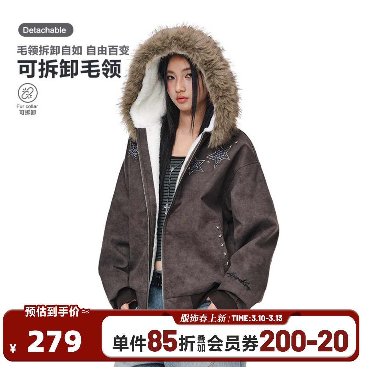 📚 404MOB超厚加绒蜡染做旧烫钻豹纹刺绣厚外套座山雕大毛领棉衣夹克
