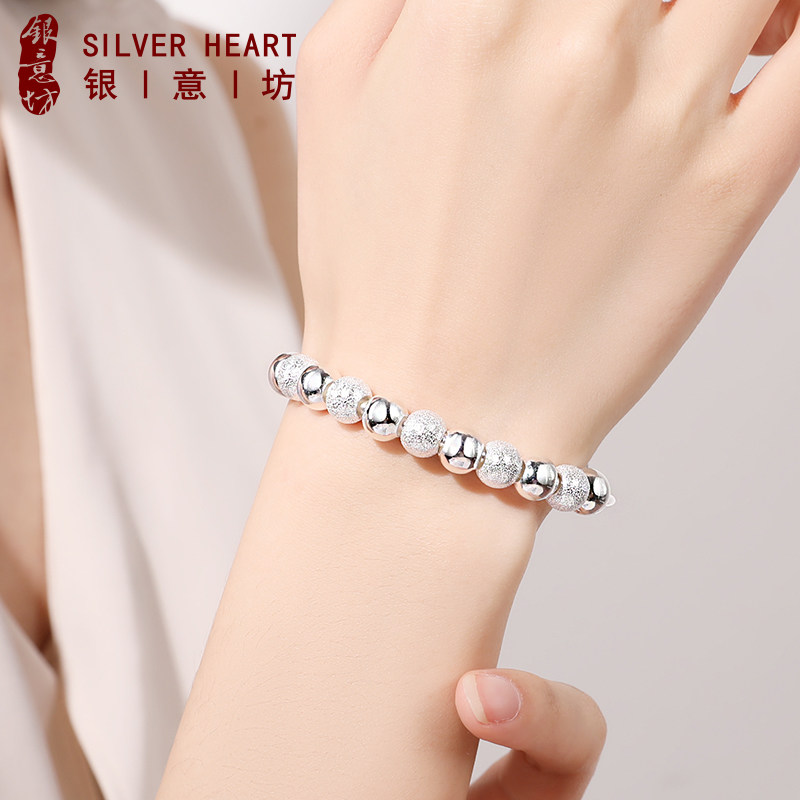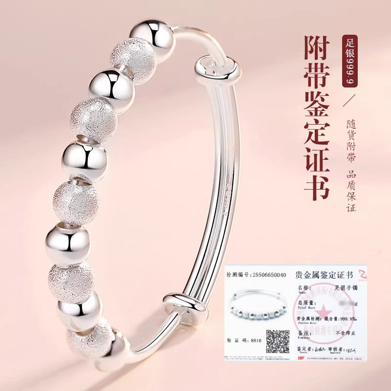 📚 9999纯银手镯新款实心小众推拉圆珠银镯子女年轻款生日礼物送女友