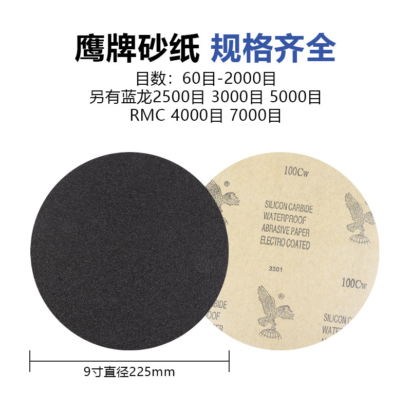 📚 鹰牌砂纸9寸圆形金相水砂纸220mm汽车打磨抛光耐水沙纸片干湿两用