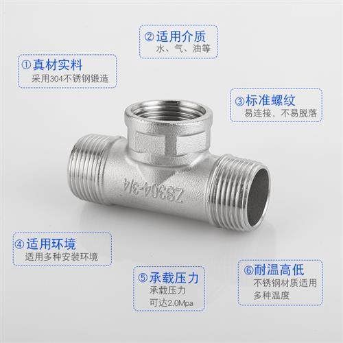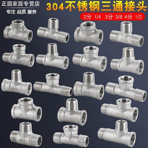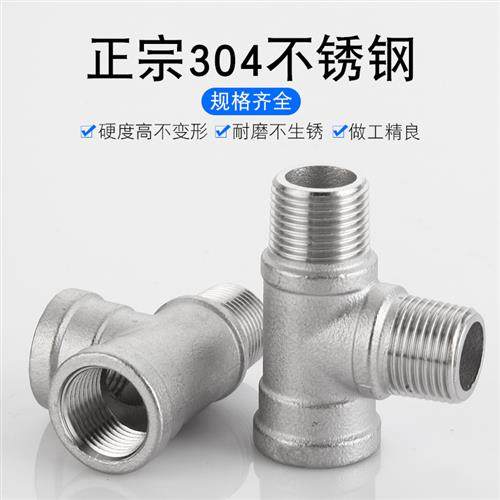 📚 304不锈钢4分6分三通加厚接头三外丝一内二外三通热水器水管配件