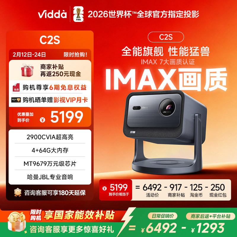 87¥ HU071 jxTfUpY8tMd¥ https://m.tb.cn/h.7AOPppo 【国补+商补立减】Vidda C2S 海信2900CVIA超亮4K高清IMAX家用三色激光投影仪电视智能手机游戏家庭影院 --------------------- 【原售价】9,499元 【现售价】8,999元。