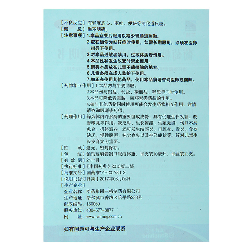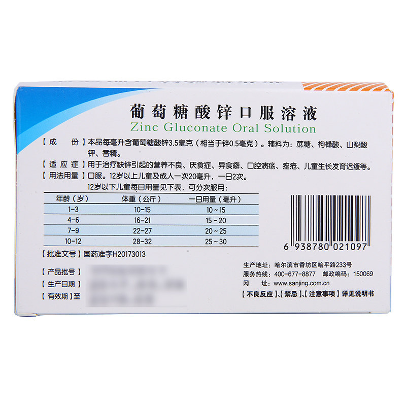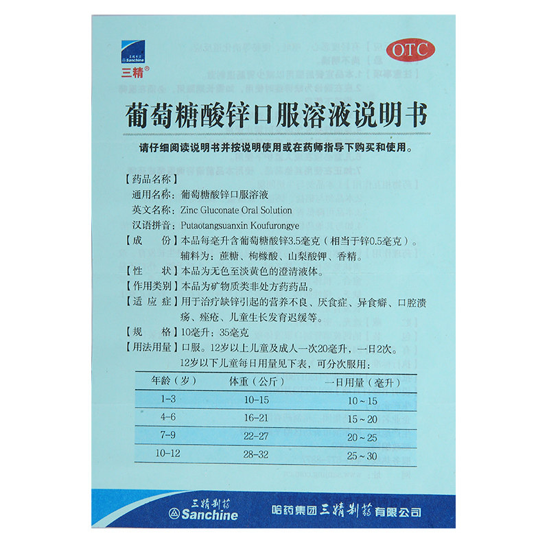 📚 哈药 三精 葡萄糖酸锌口服溶液12支 蓝瓶 儿童缺锌营养不良厌食症