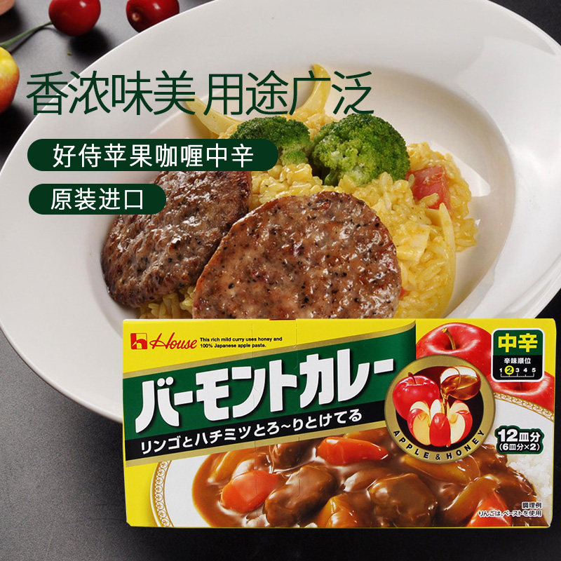 📚 日本好侍苹果咖喱块中辛原装进口咖喱酱微辣咖喱调料230g包邮