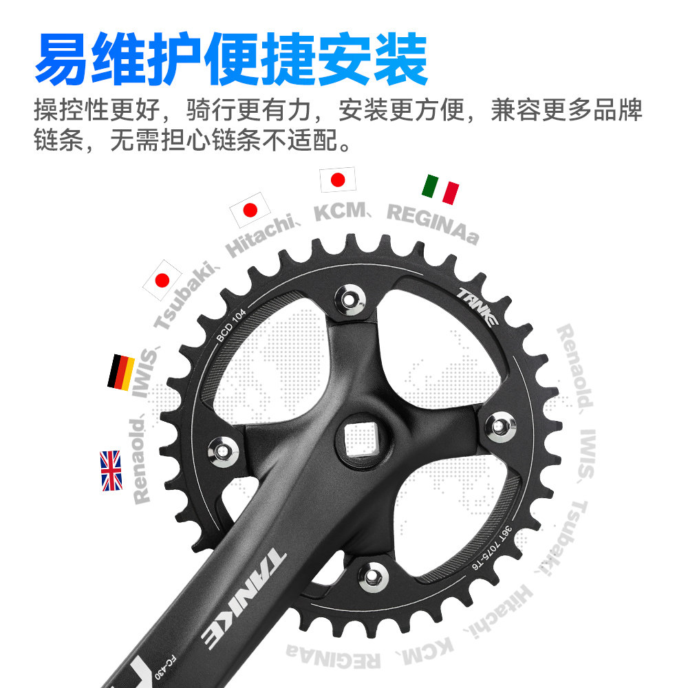 📚 TANKE碳客山地自行车方孔曲柄 正负齿104BCD单盘牙盘爆改单车零件