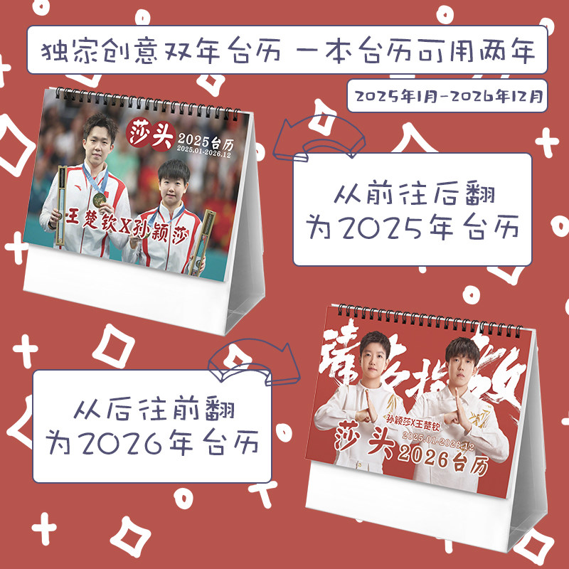 📚 莎头王楚钦孙颖莎奥运2025-2026年双年台历学生桌面摆台记事日历