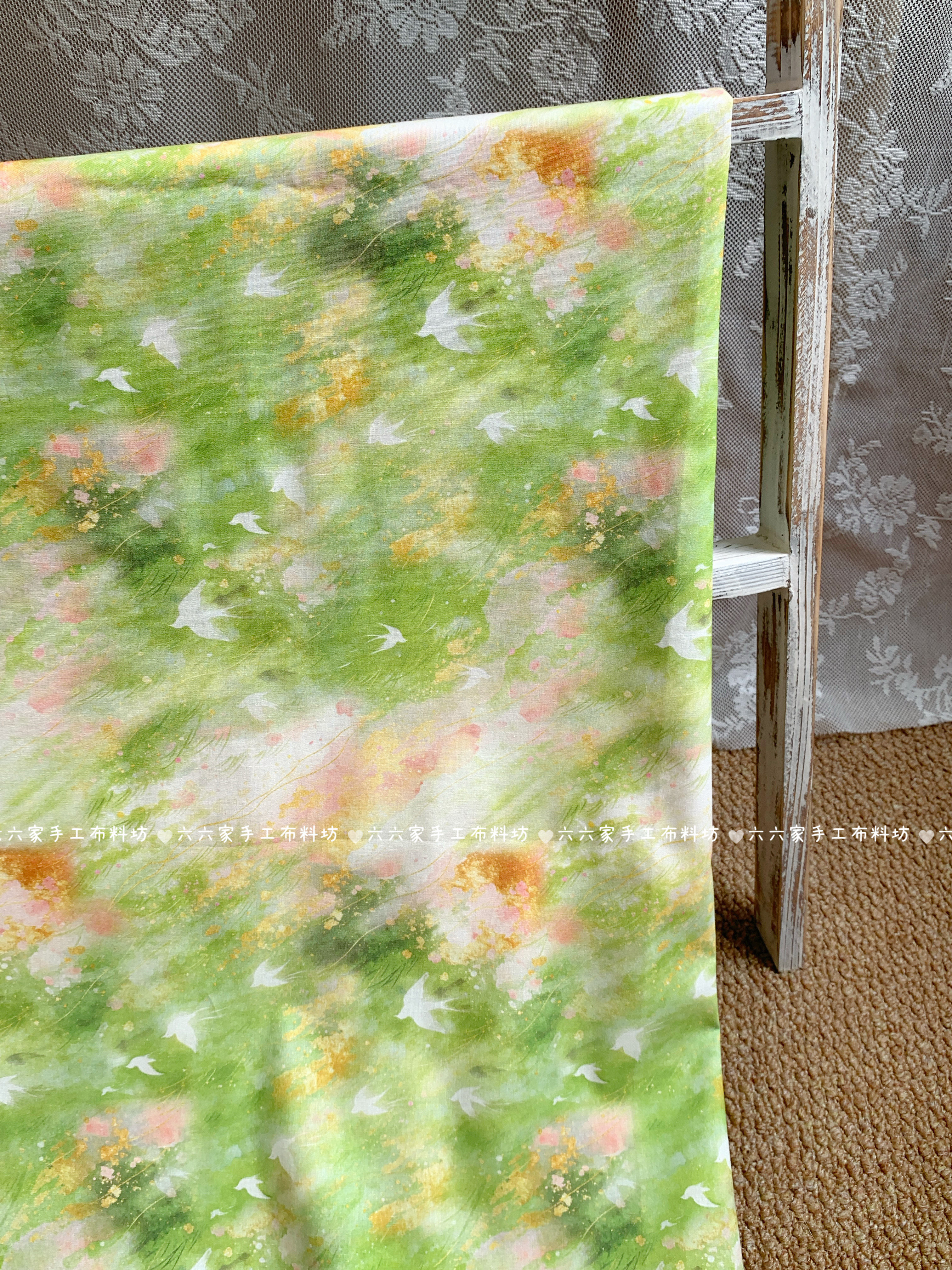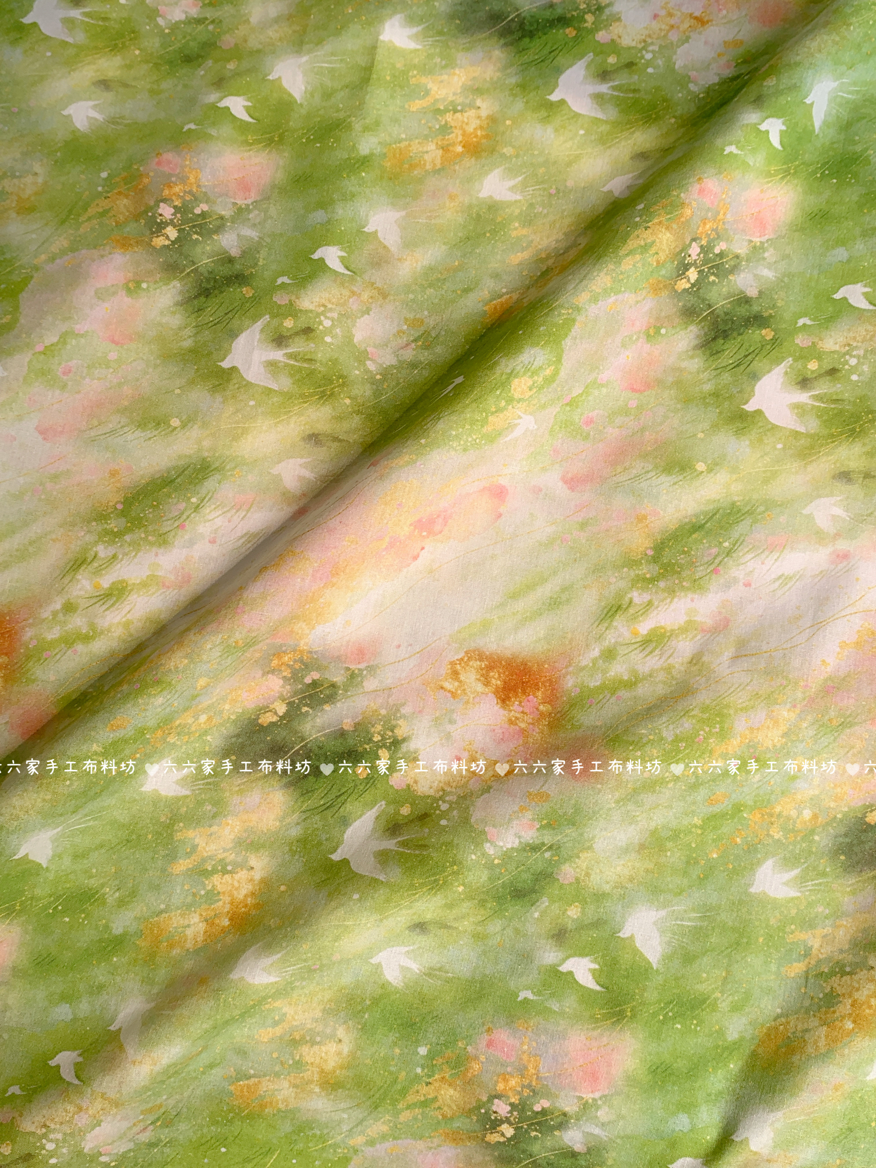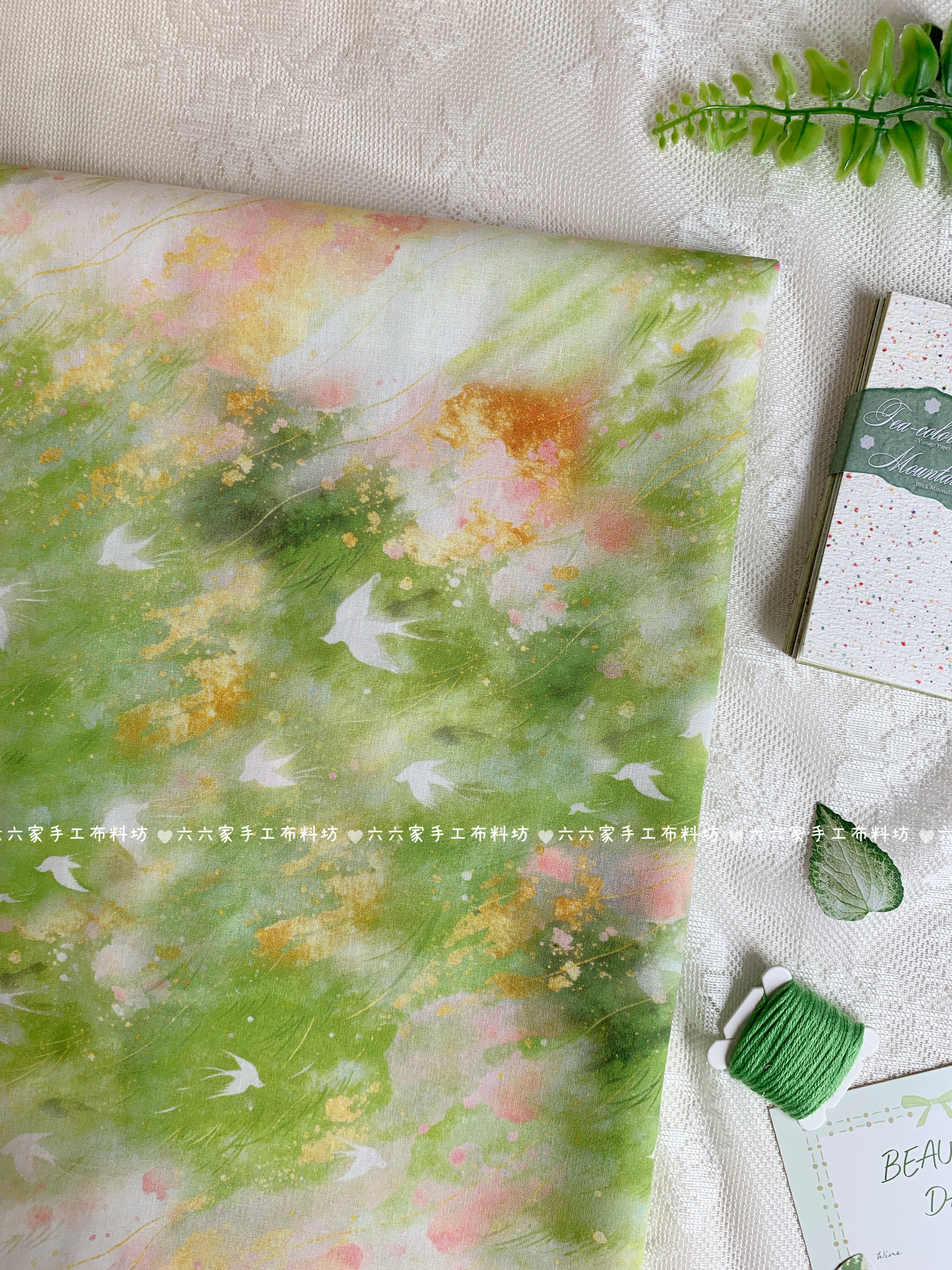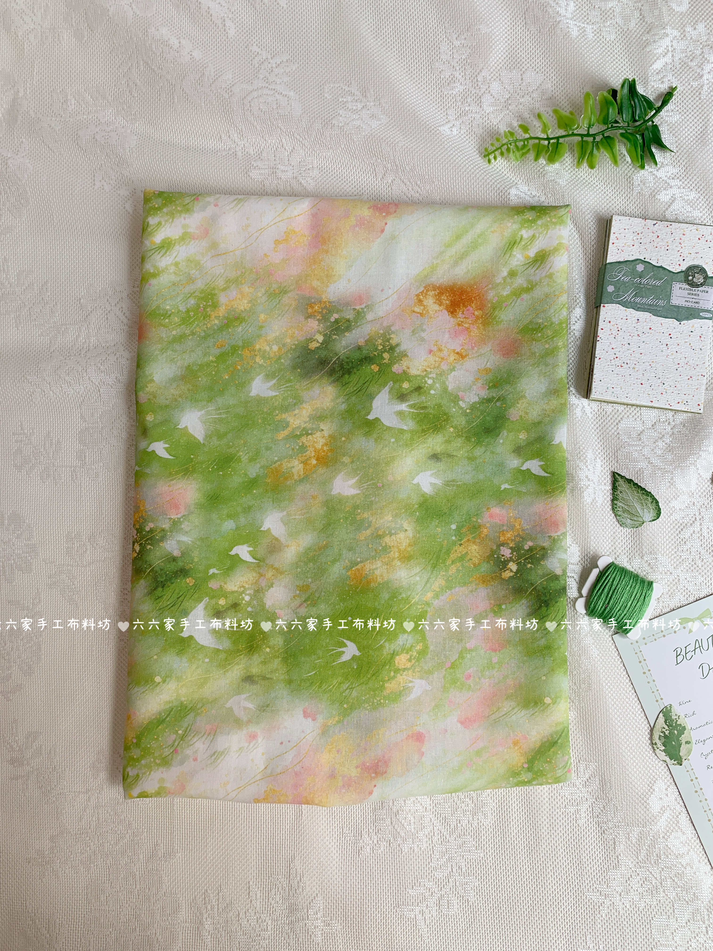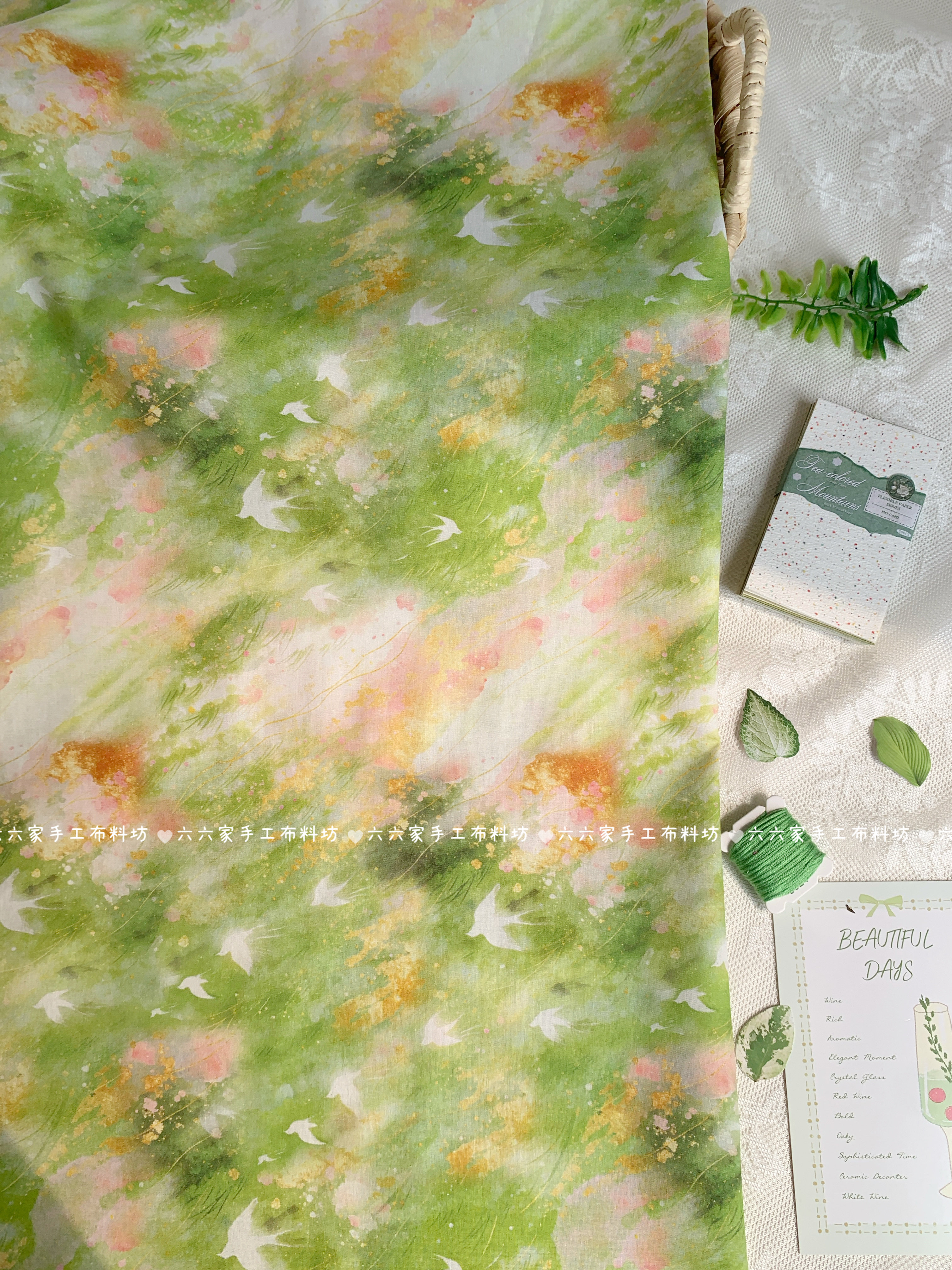 📚 全棉40支印花布春日燕归春野晕染水彩风服装发饰包包发圈diy面料