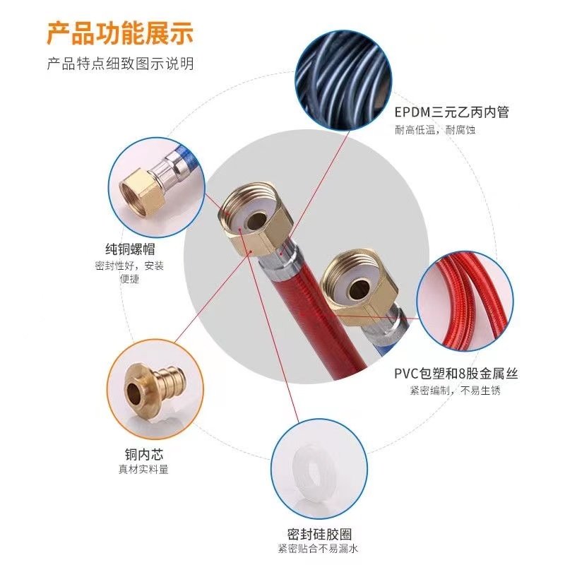📚 热水器马桶进水软管水管冷热4分铜帽 金属编织防爆水龙头软连接管