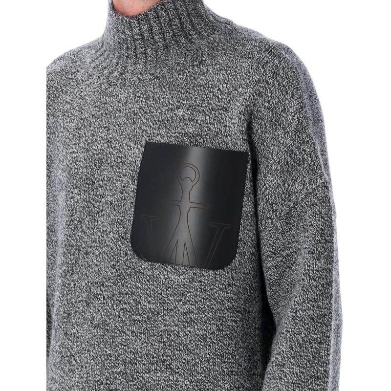 📚 J.W. Anderson 男士 FW25 毛衣 JW Anderson 貼袋高領針織套頭衫