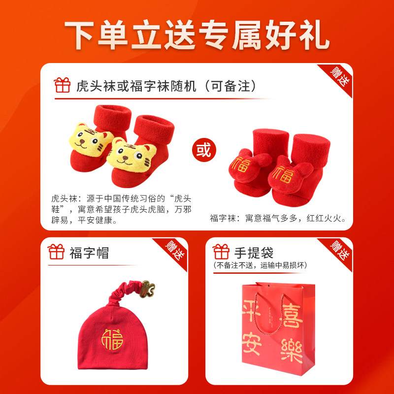 📚 满月宝宝衣服秋冬A类纯棉喜庆婴儿红色连体衣女新生男孩百天冬装