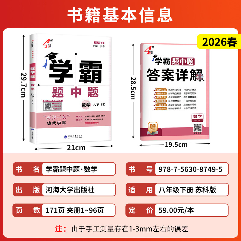 📚 2026春五星学霸题中题提语文数学英语物理化学七八九年级上下人教苏教苏科北师浙教同步练习册课时作业本初一二三辅导资料教辅25秋