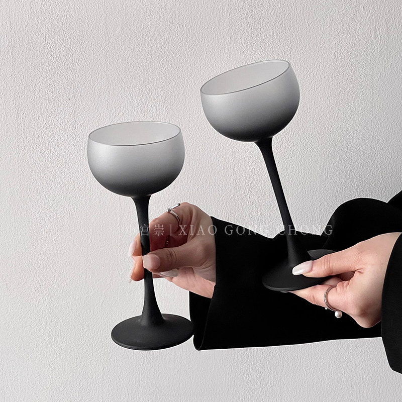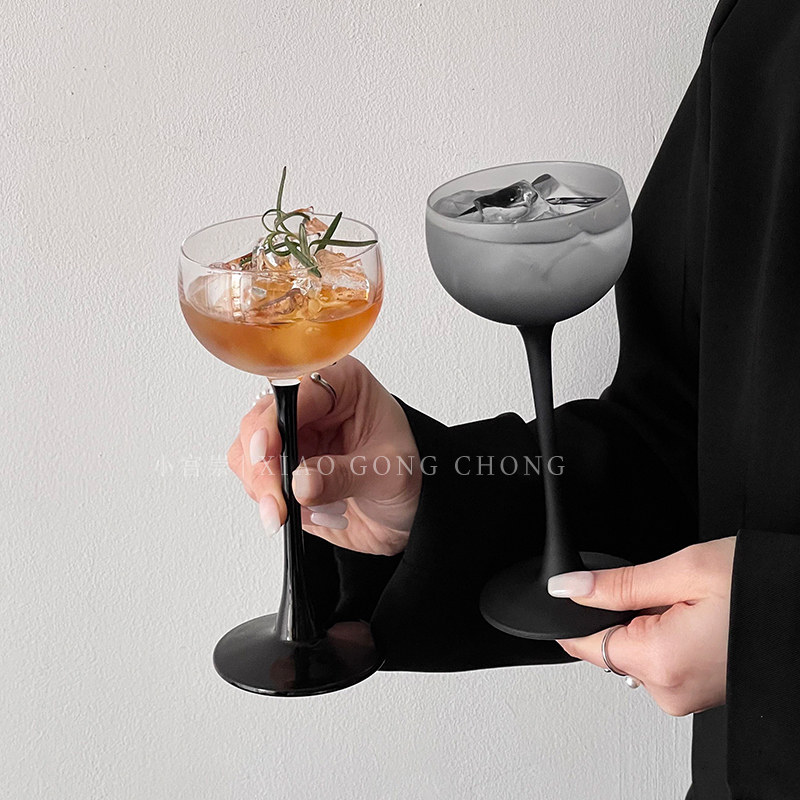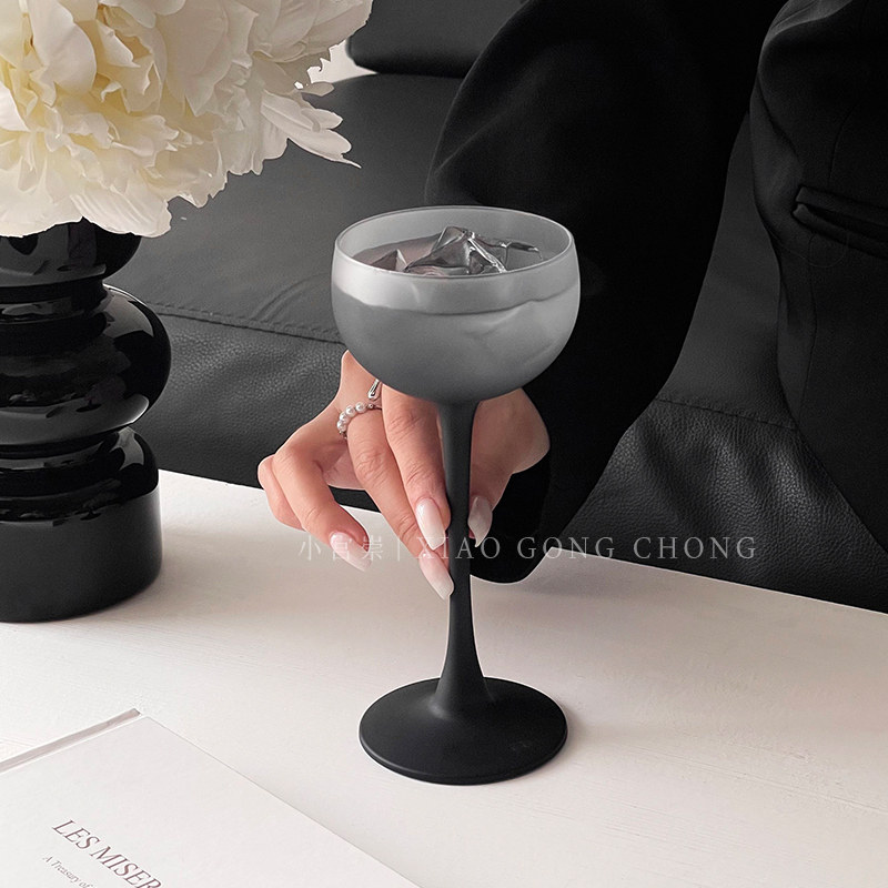 📚 小众设计感磨砂渐变黑高脚杯女士微醺酒杯特调杯鸡尾酒杯饮品杯子