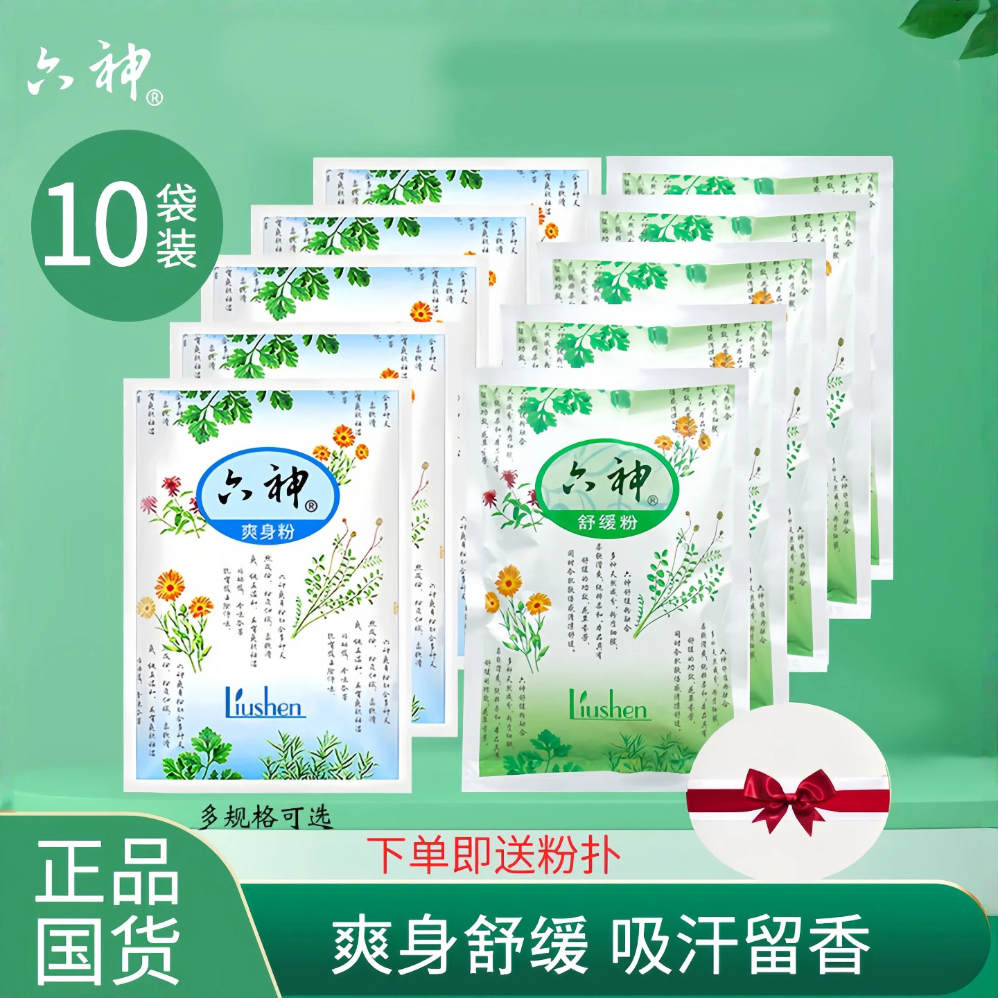 📚 六神爽身粉舒缓粉痱子粉成人吸汗留香干爽清凉老人可用袋装正品