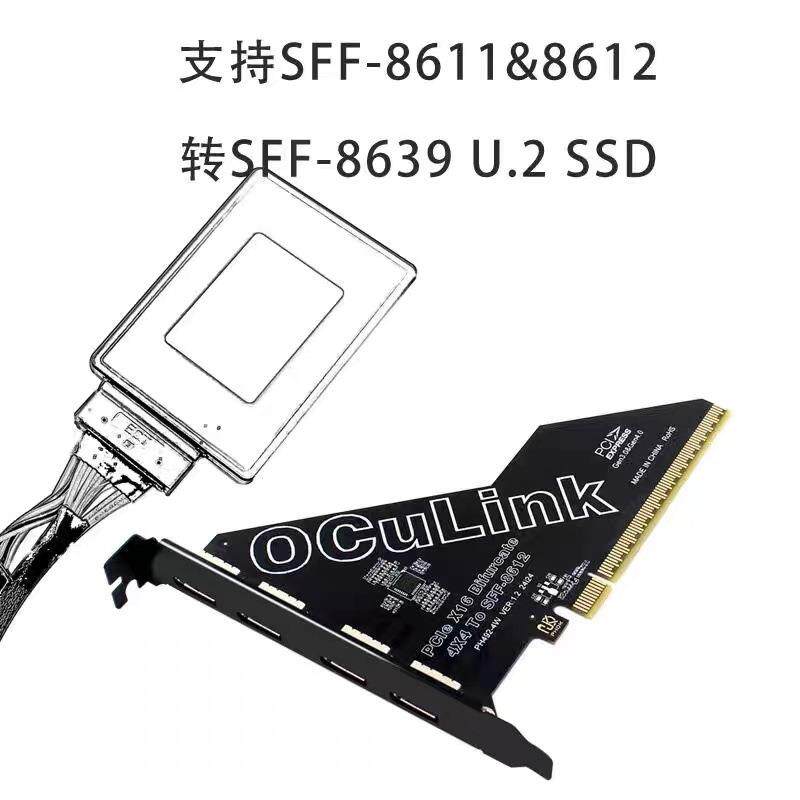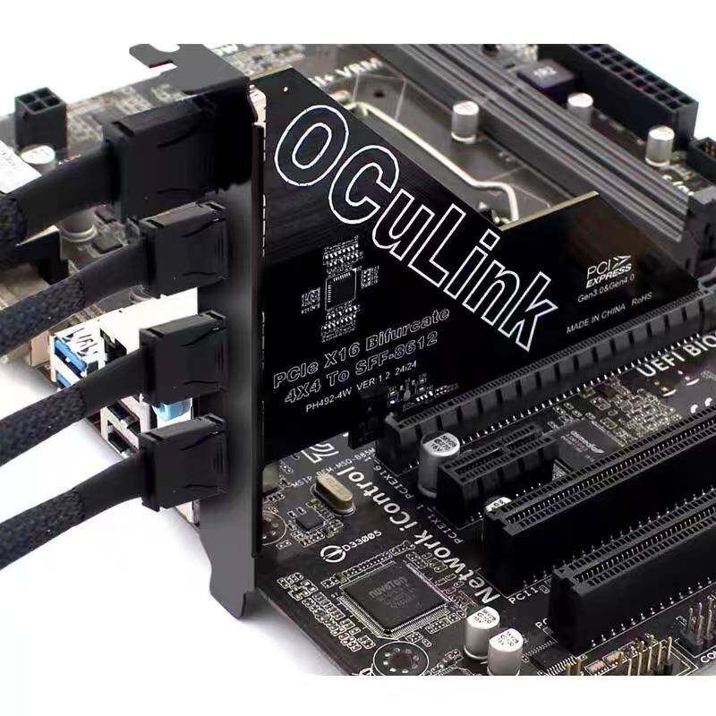 📚 PCIeX16拆分4口SFF8611&8612Oculink扩展卡外接U.2SSD外置显卡