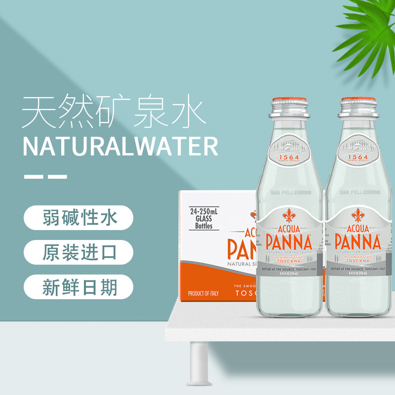 📚 PANNA普娜天然矿泉水意大利进口矿物质水弱碱性水250ml*24瓶装