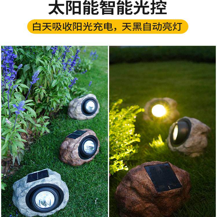 📚 太阳能户外灯庭院灯花园布置院子装饰仿真石头射灯草坪景观照树灯