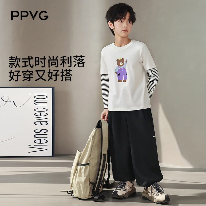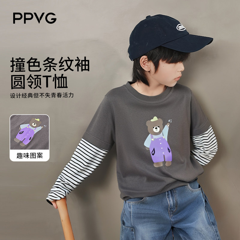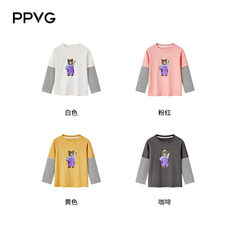 📚 【小叶总】贝贝王国卡通小熊假两件拼接T恤WAT1ZT723