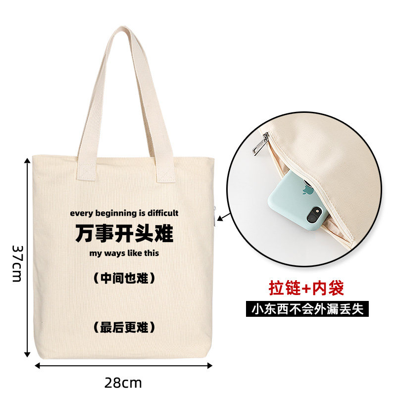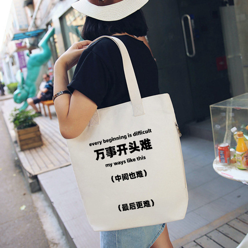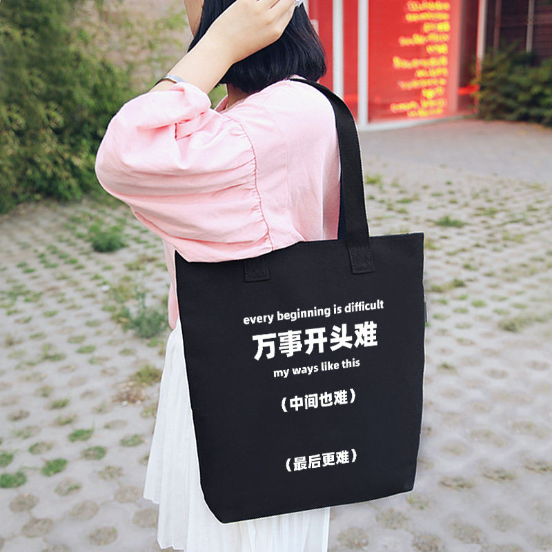 📚 秀洛万事开头难 中间也难 最后更难单肩斜挎手提购物袋帆布托特包