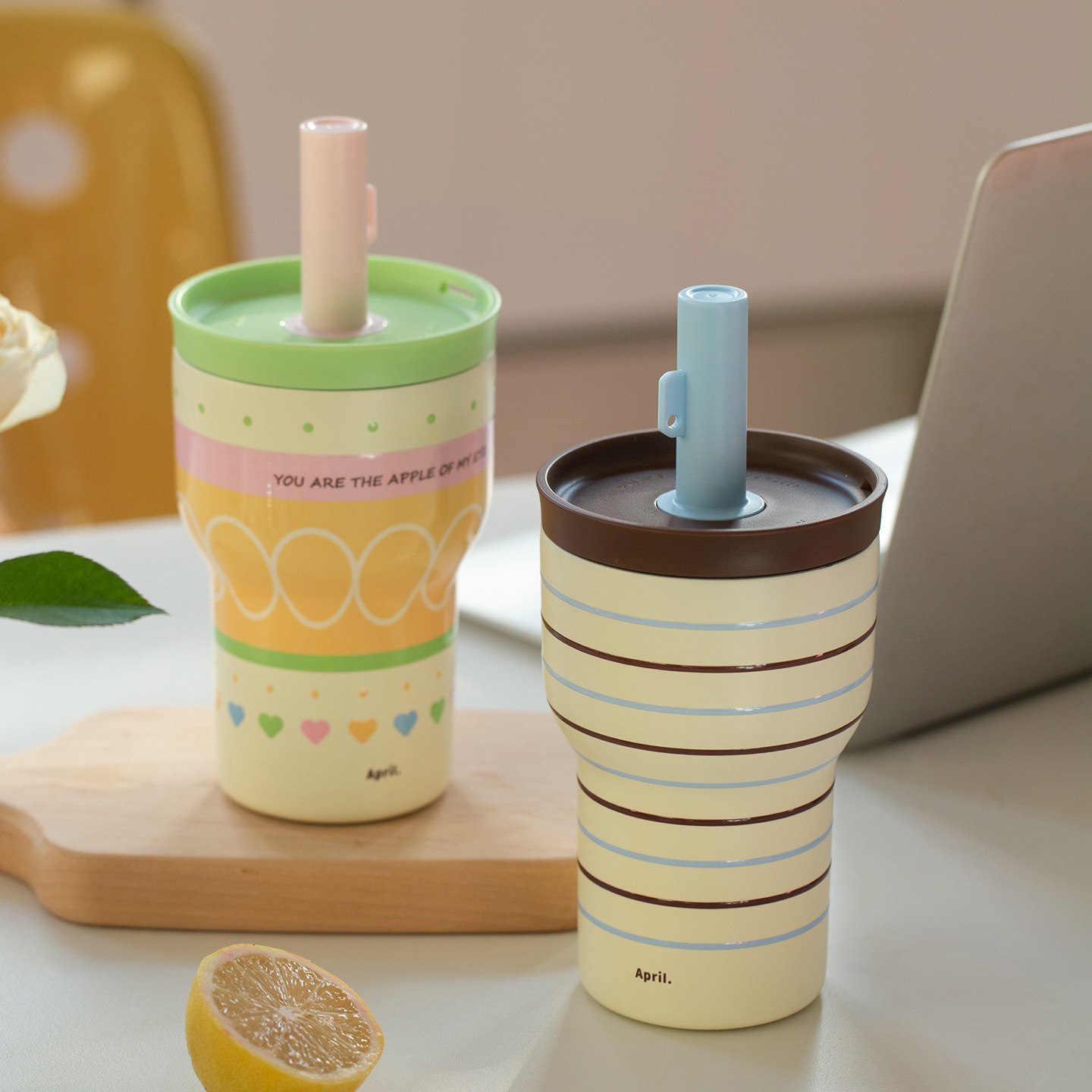 📚 April吸管保温杯办公室家用桌面水杯女生高颜值咖啡杯子316不锈钢