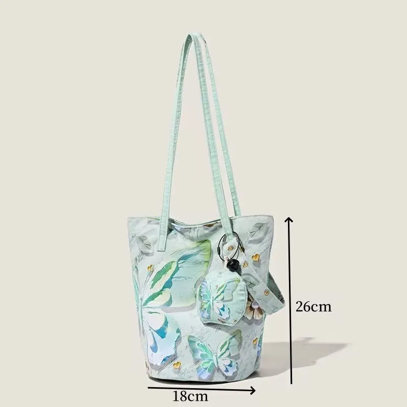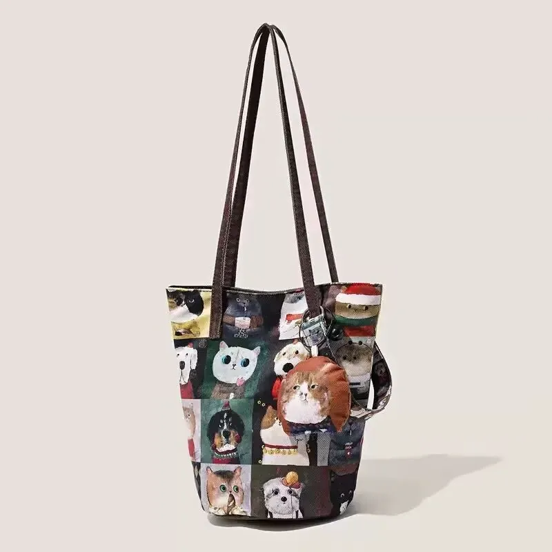 📚 可爱小狗印花通勤包挂件休闲水桶包斜挎帆布包通勤大容量包包女