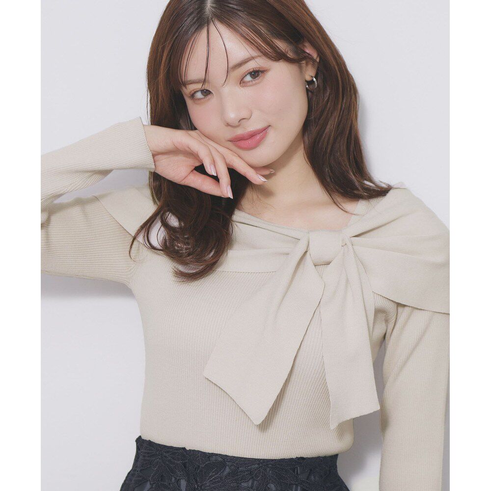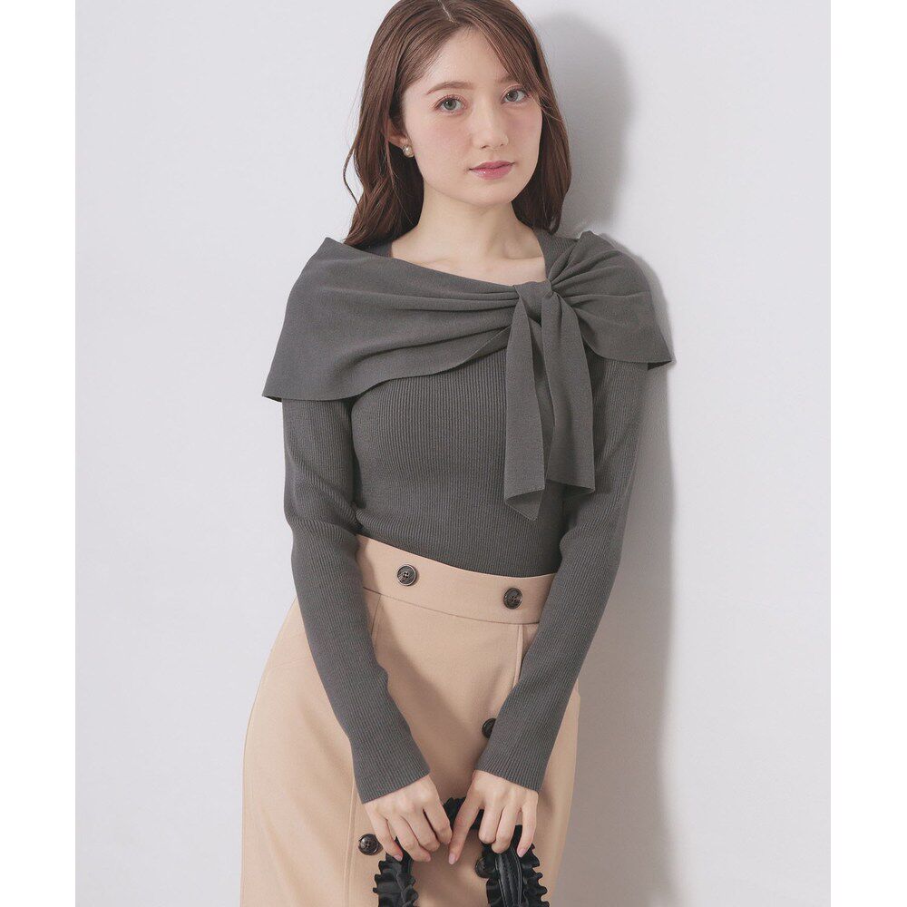📚 1h可退 日本直邮index 女装 露肩蝴蝶结罗纹针织上衣 C5815023202