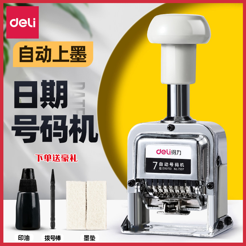 📚 得力打码机日期打码器打生产日期打码机自动上墨多位自动号码机自动编号印页码日期印章编号小型打码器墨轮
