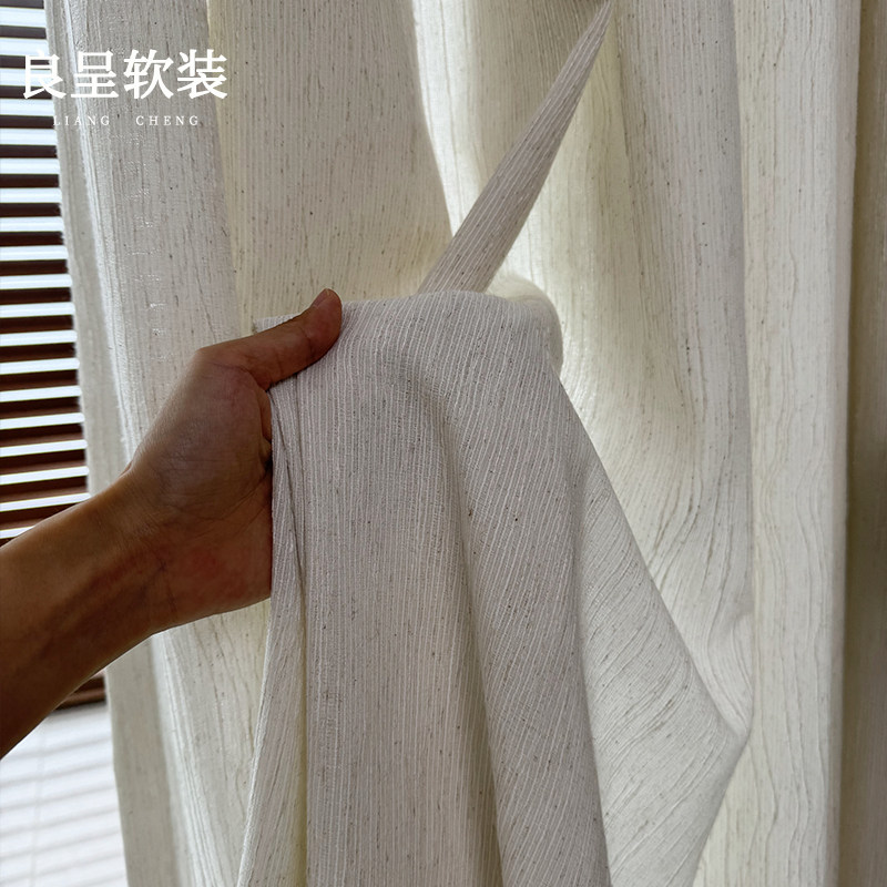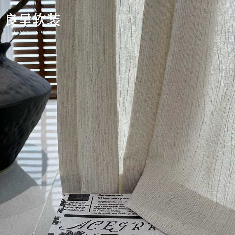 📚 南枝纱 棉麻窗纱中古风透光不透人纱帘原木风窗帘客厅阳台半遮光
