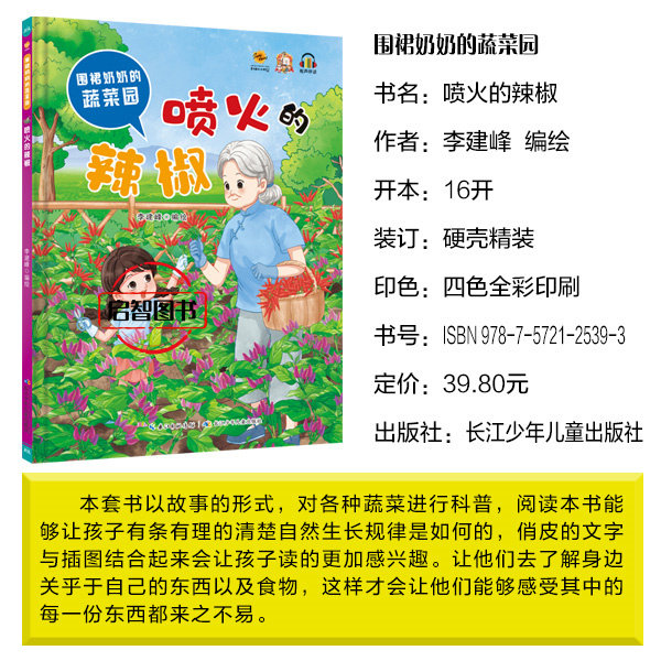 📚 喷火的辣椒 围裙奶奶的蔬菜园幼儿园硬壳硬皮精装蔬菜食物科普绘本3-6-8岁儿童启蒙图画书亲子共读睡前故事A4大开本不注音图多字少