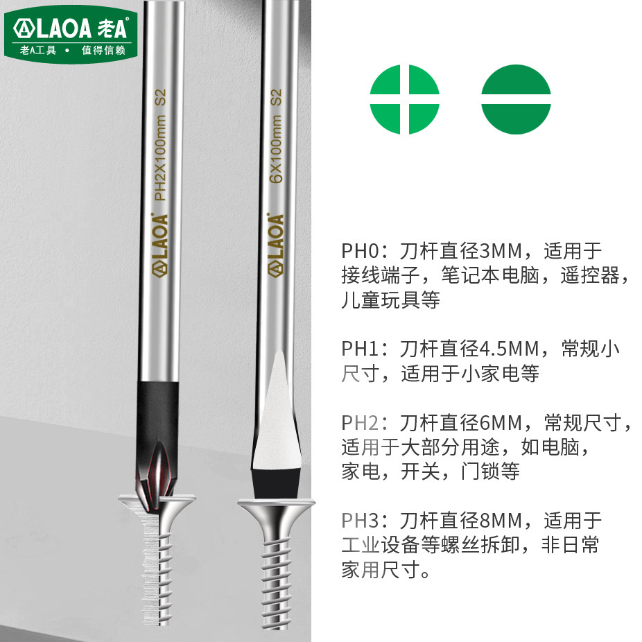 📚 老a螺丝刀套装 S2螺丝刀十字强磁螺丝批超硬平口小改锥一字起子